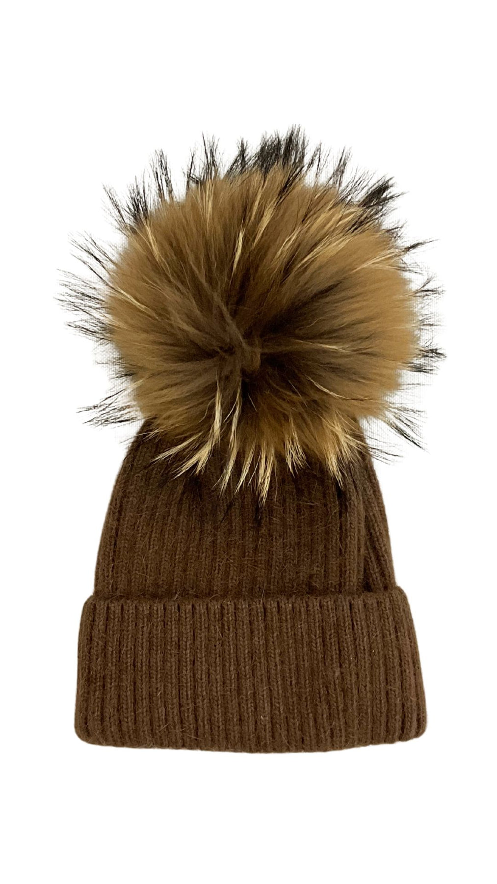 Angora Wool Pom Hat Mocha/Natural-Accessories-Uniquities