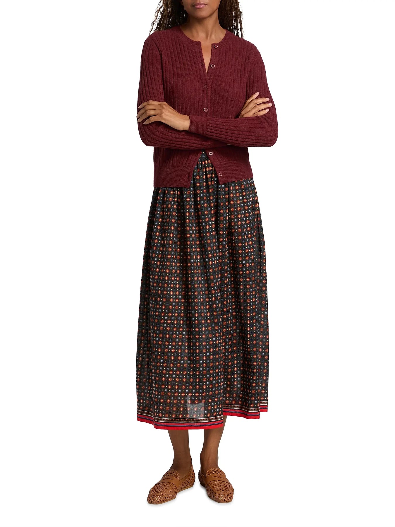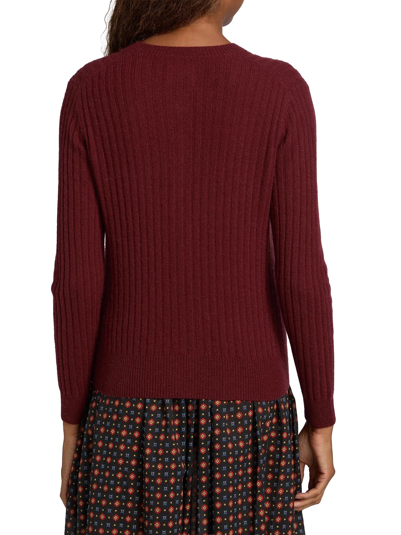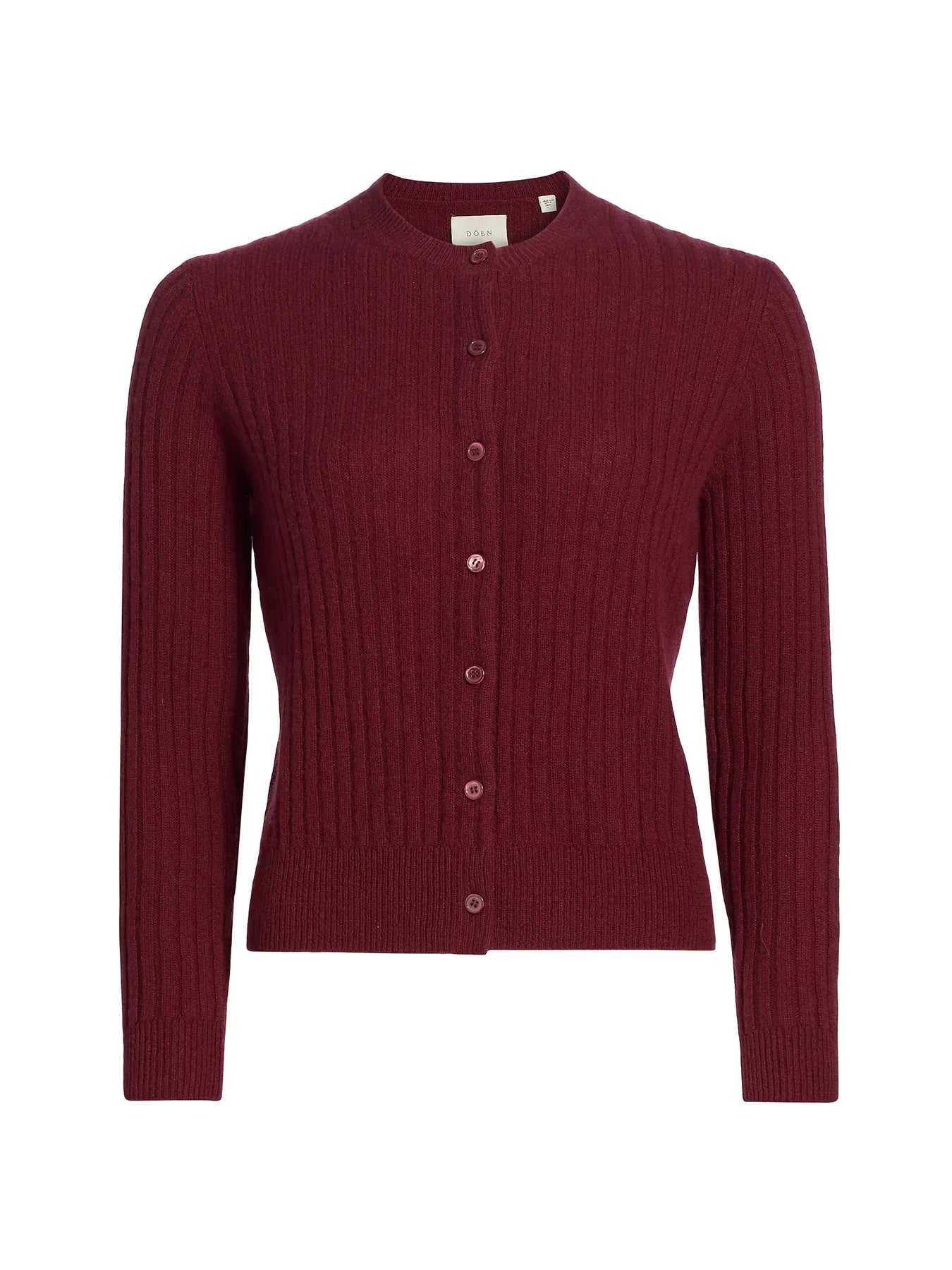 Crafted of soft rib-knit cashmere, the Danae cardigan from DÔEN is designed with a ribbed crewneck and button-front closure.