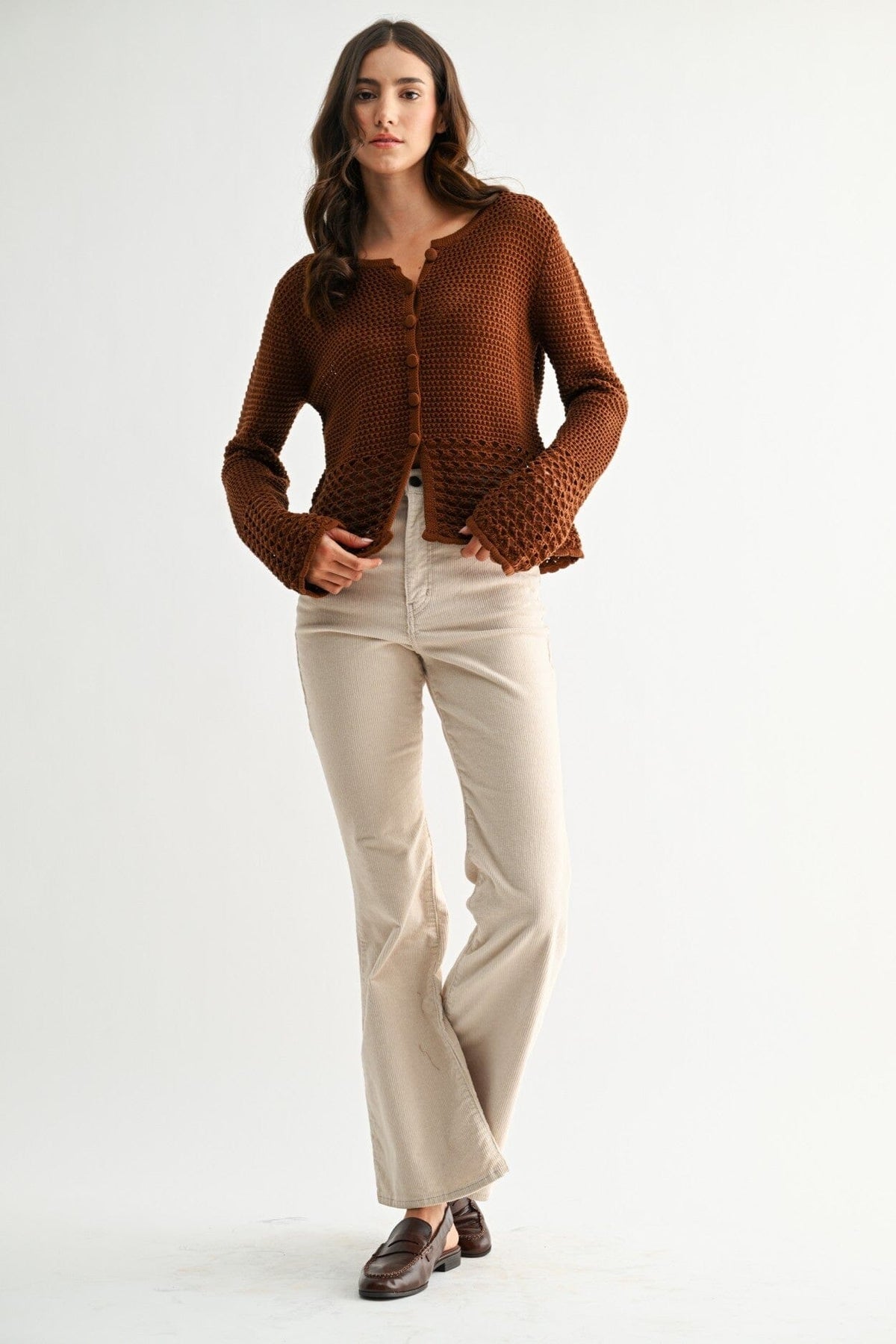 Wrap yourself in cozy charm with the Amanda Crochet Cardigan—a brown beauty that's equal parts vintage vibes and modern style. Featuring an eye-catching crochet design that demands attention, this long-sleeve layer brings texture and personality to any outfit. Perfect for layering over your favorite tee or dress, it's the kind of piece that makes people ask, "Where did you get that?" Soft, comfortable, and undeniably unique, this cardigan is your new go-to for effortless style that actually stands out.