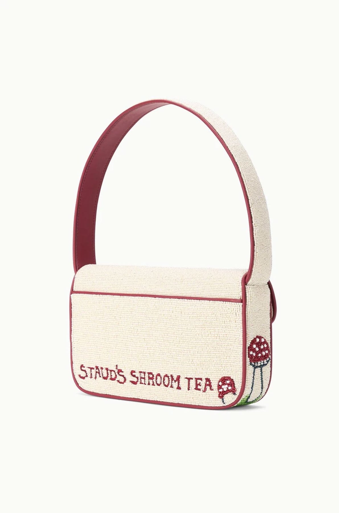 Our latest limited-edition Tommy features a playful seasonal print. The Tommy Bag is a hand-beaded shoulder bag with vegan leather piping. This style features a single flap closure, inner zip, and a back slip pocket.