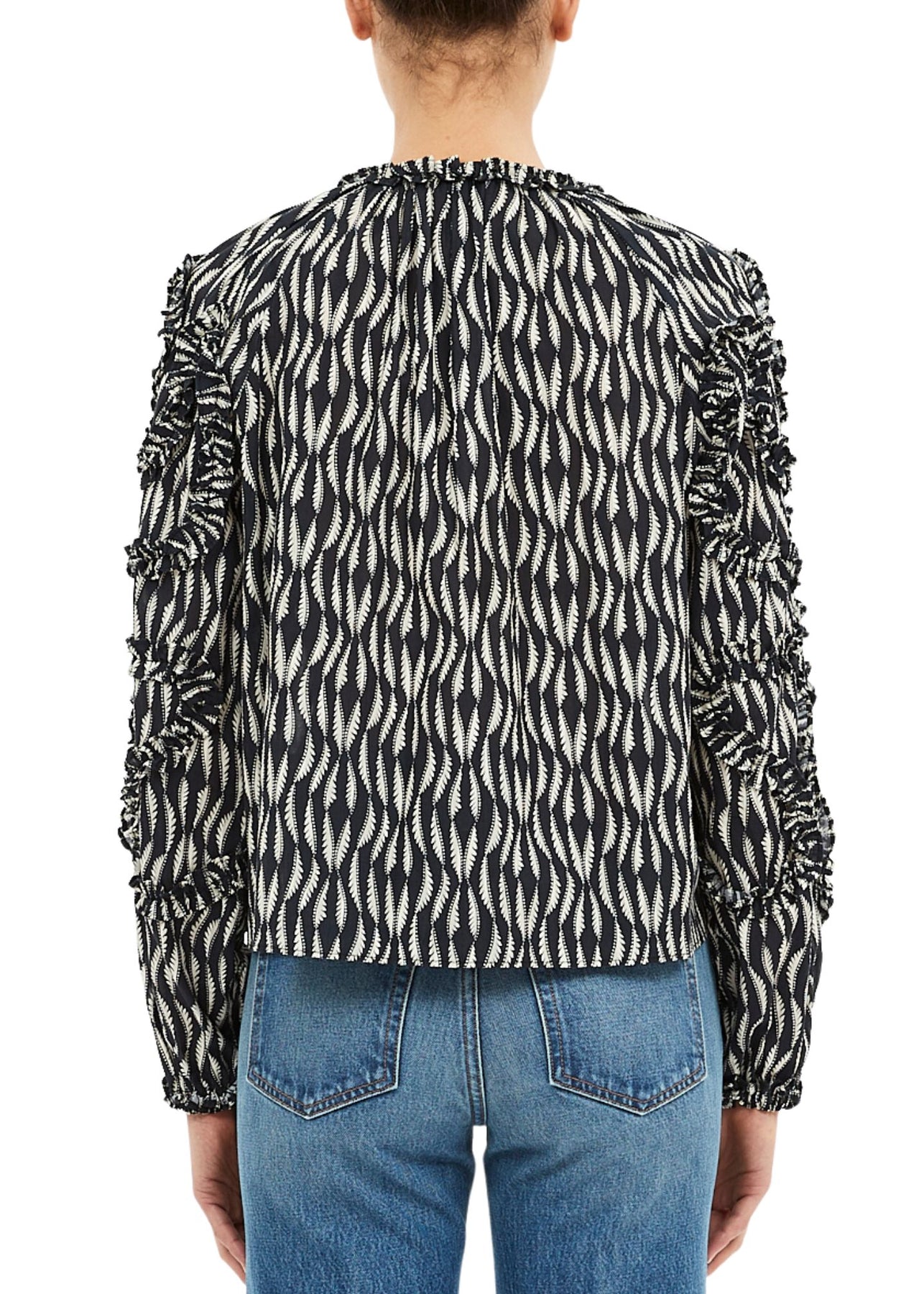 The Azrou blouse from Ulla Johnson features a printed design and ruffled detailing.