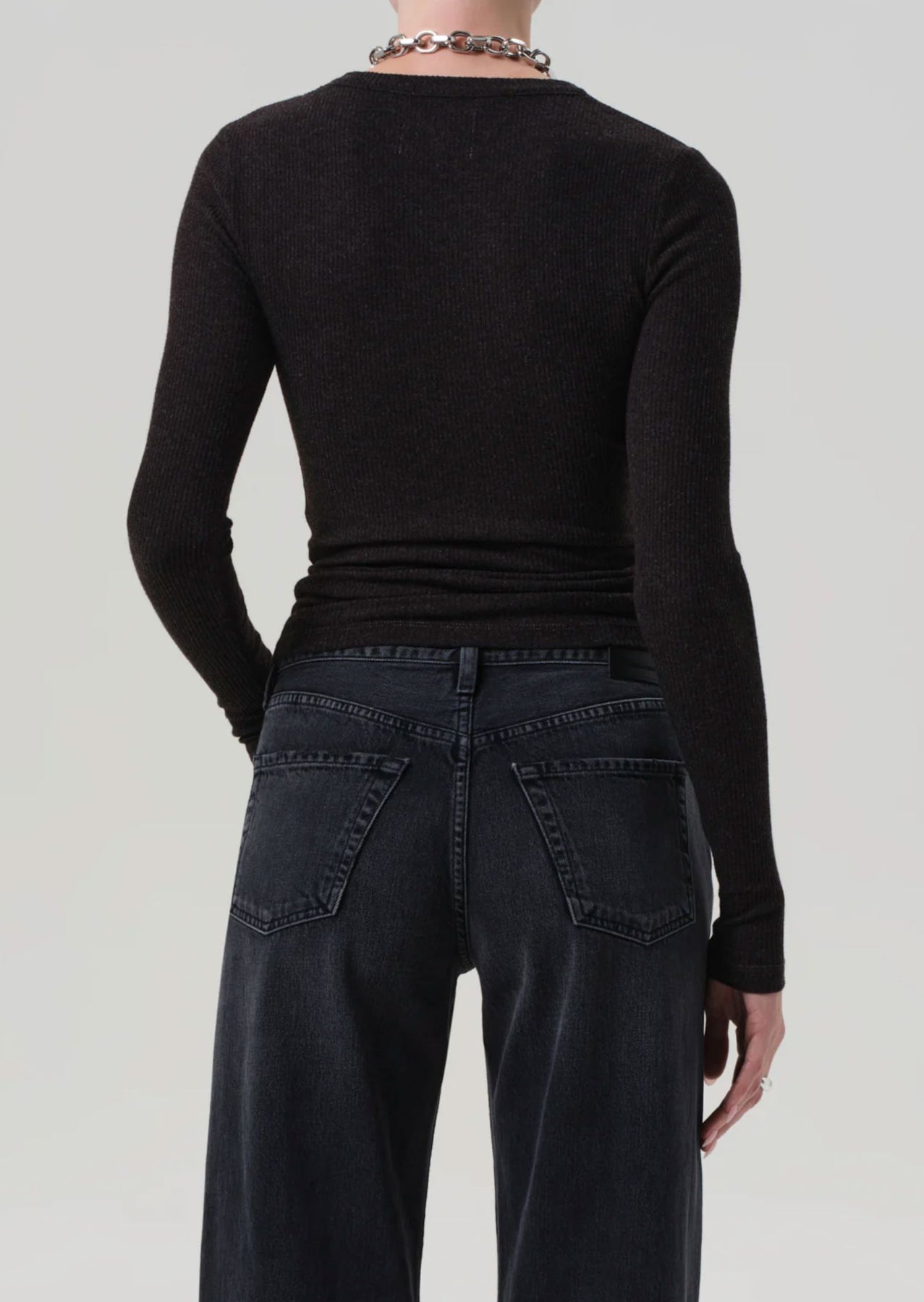Looks Like: Dark heathered brown long sleeve crewneck