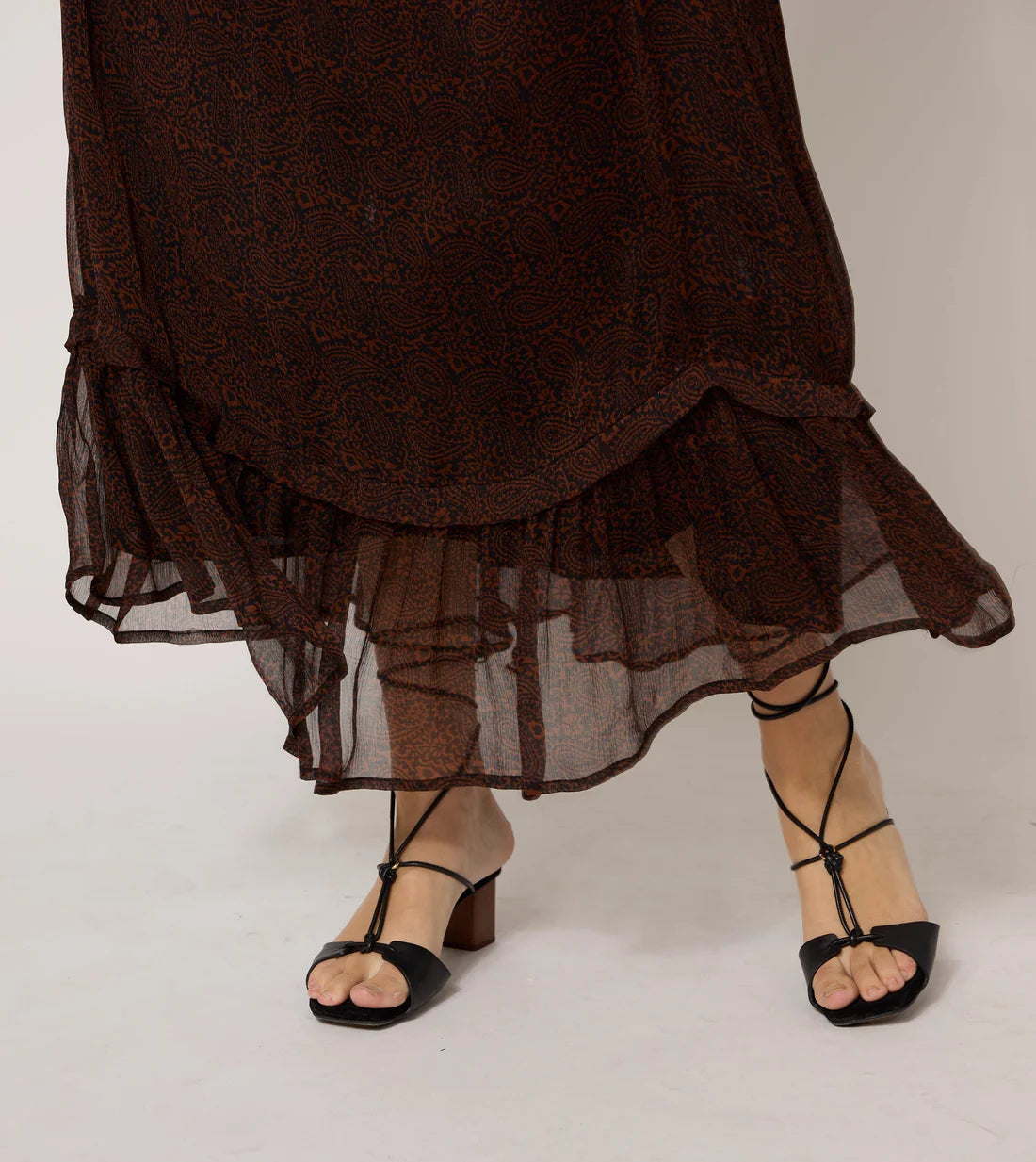Ethically handmade in India from viscose chiffon, the Tatum Ankle Dress features an elastic waistband and ruffle detail at the sleeves. Elegant and flowy, this dress is perfect for any occasion.