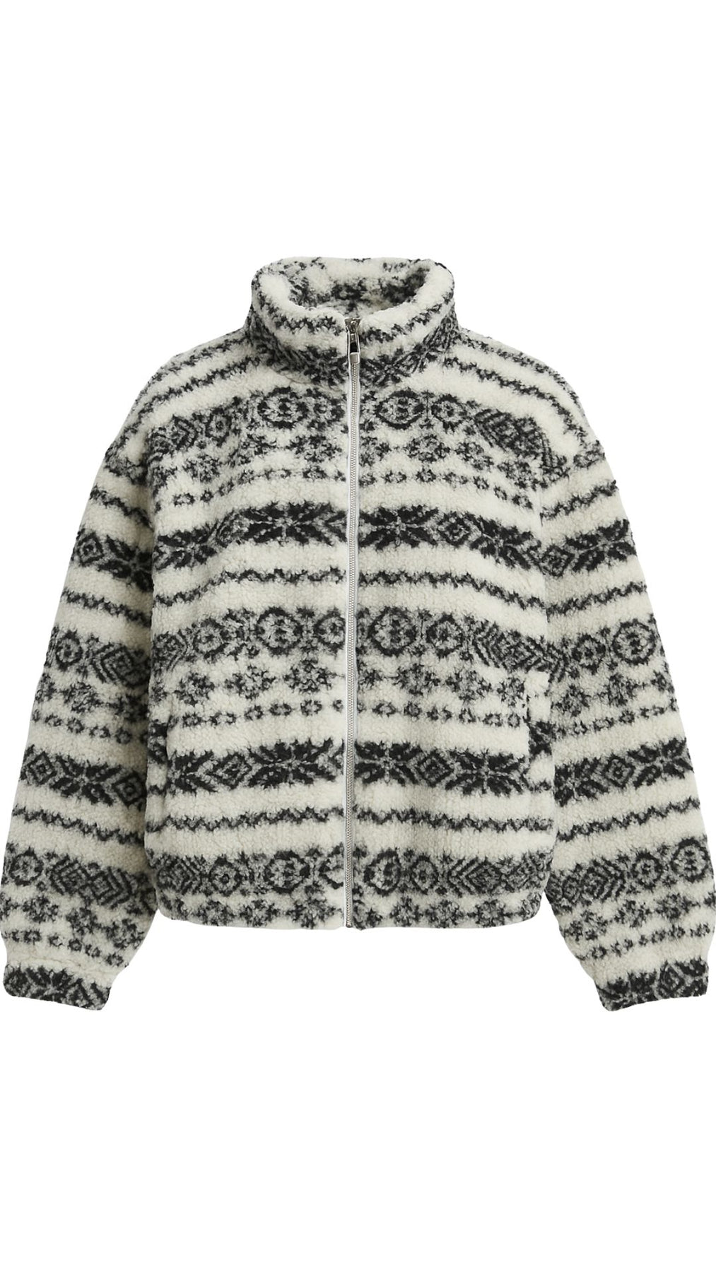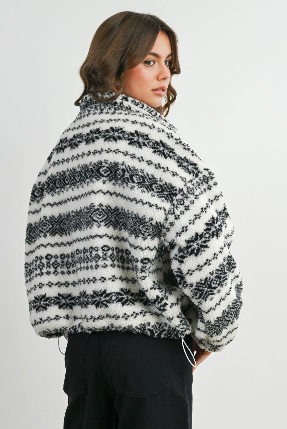 Stay warm and stylish in this fuzzy fleece zip-front patterned jacket. Designed with soft, cozy fleece and a bold all-over pattern, it features a full zip closure and relaxed fit for easy layering. Perfect for chilly days, it adds a fun and comfortable touch to your casual wardrobe.