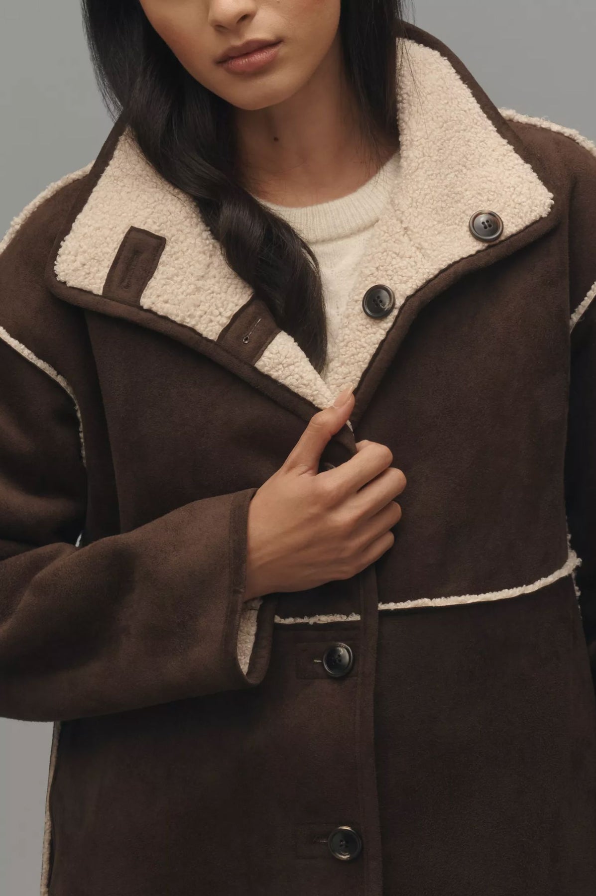Experience ultimate warmth and style with the Shona Reversible Jacket. This cozy sherpa coat in a beautiful rich brown offers two distinct looks thanks to its dual textures. Wear it one way for a soft, plush sherpa feel, or flip it inside out for a sleek, smooth finish—perfect for adapting to your mood or the weather. Designed for comfort and versatility, it’s your go-to layer for chilly days.