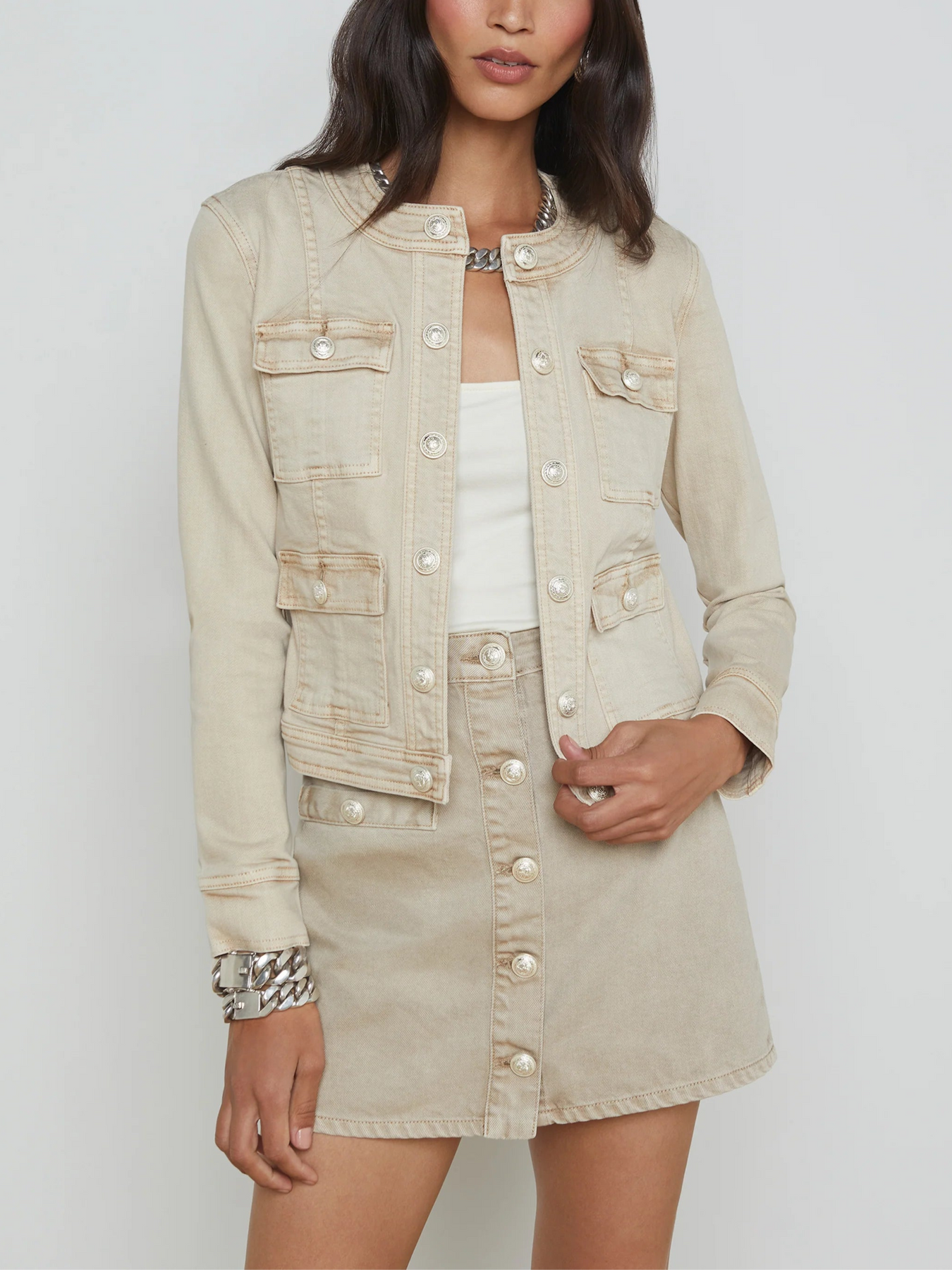A jean jacket with the polish of a blazer. Now back in a versatile neutral.