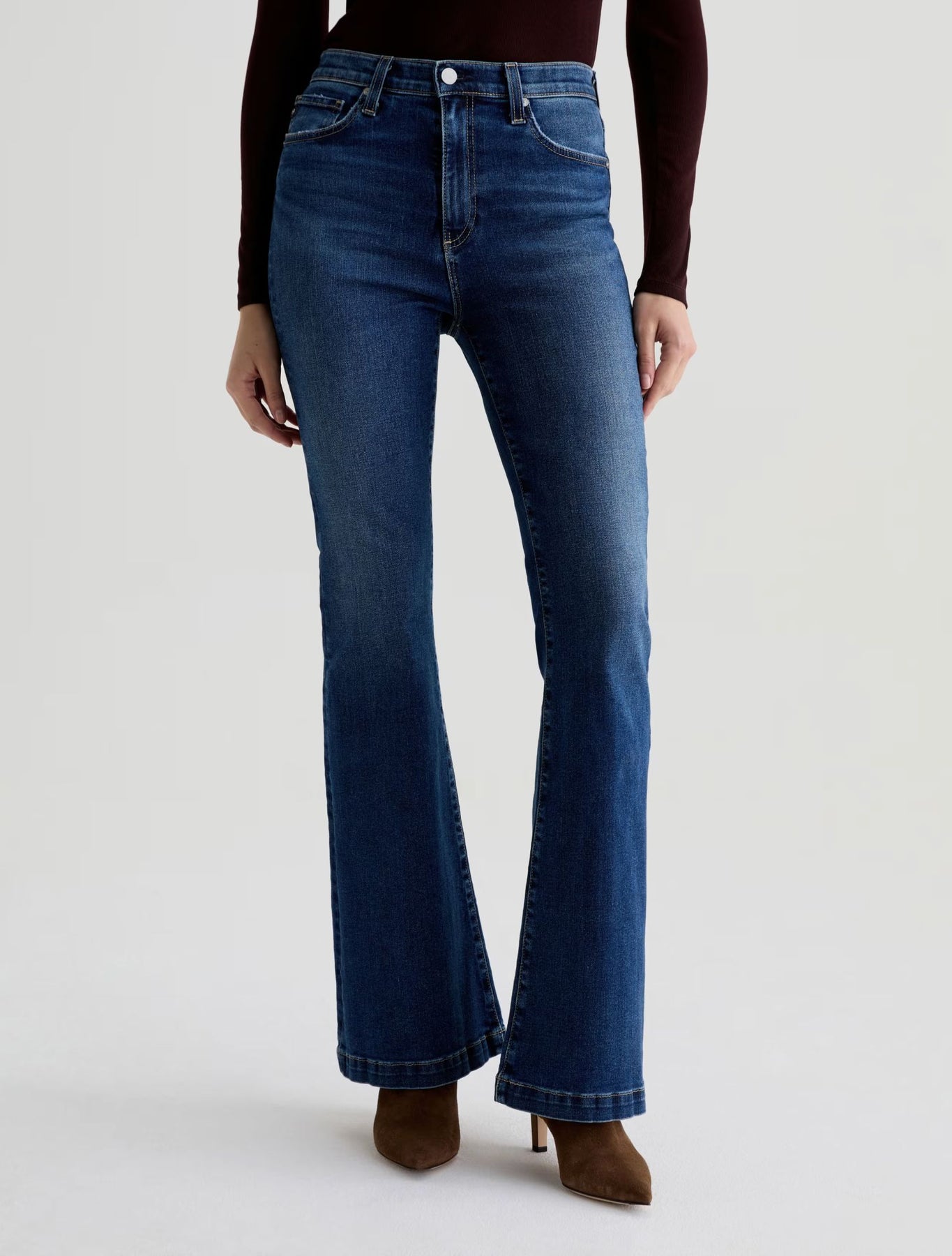 The Madi is a high-rise flare jean crafted from power-stretch denim. Designed to elongate the legs and hug the body with its flared-out hem design, this style combines a sleek dark wash with a flexible fit that moves with you while maintaining its shape. Crafted from premium denim sourced from Japan’s Kaihara Mill.