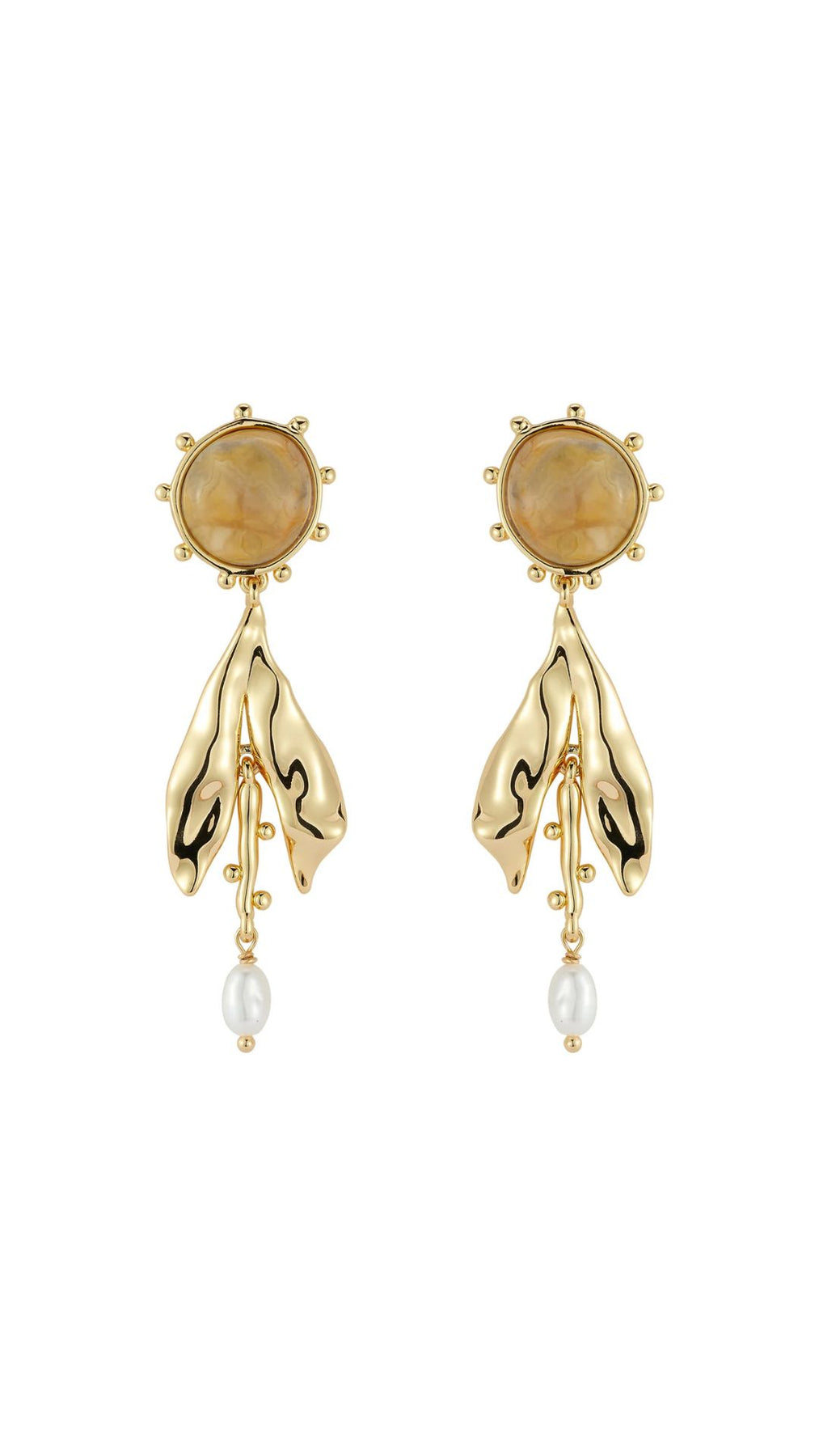 Elevate your collection with the Della Earrings, featuring lustrous freshwater pearls paired elegantly with semi-precious stones. Set in refined gold, these delicate drop earrings bring a subtle yet sophisticated touch to any ensemble, perfect for those who appreciate timeless craftsmanship and expert design.
