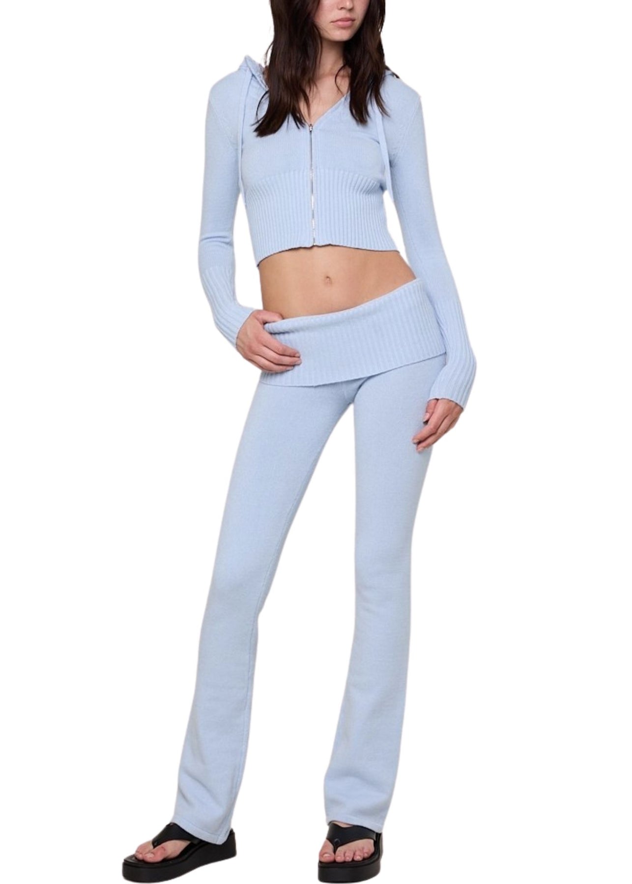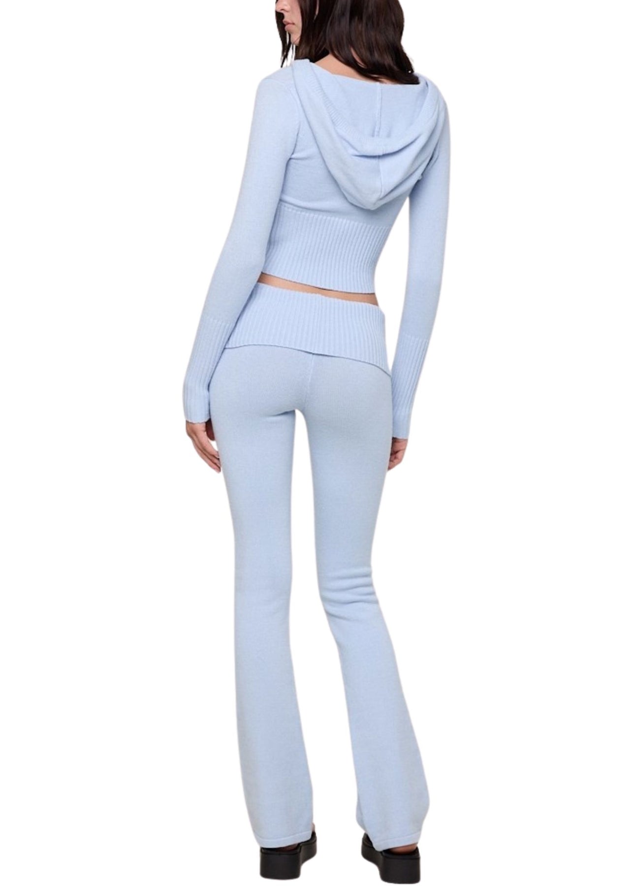 Stay comfy and cute in this cozy, lightweight Cropped Knit Hoodie in a refreshing light blue. Perfect for lounging or on-the-go, it pairs effortlessly with the matching pants to create a stylish lounge set that’s both playful and relaxed.