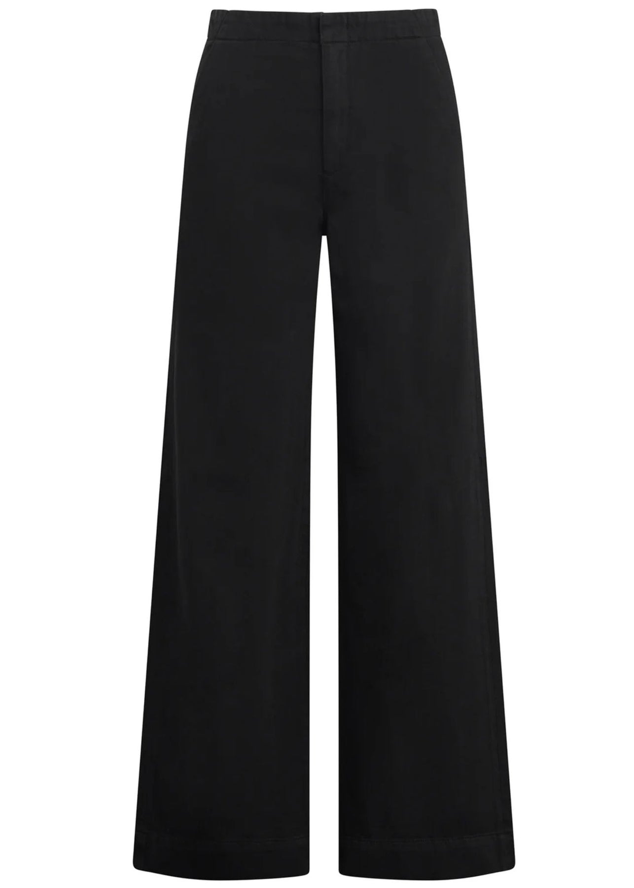 A high-rise trouser that is fitted at the waist and hip with a full-length wide leg.