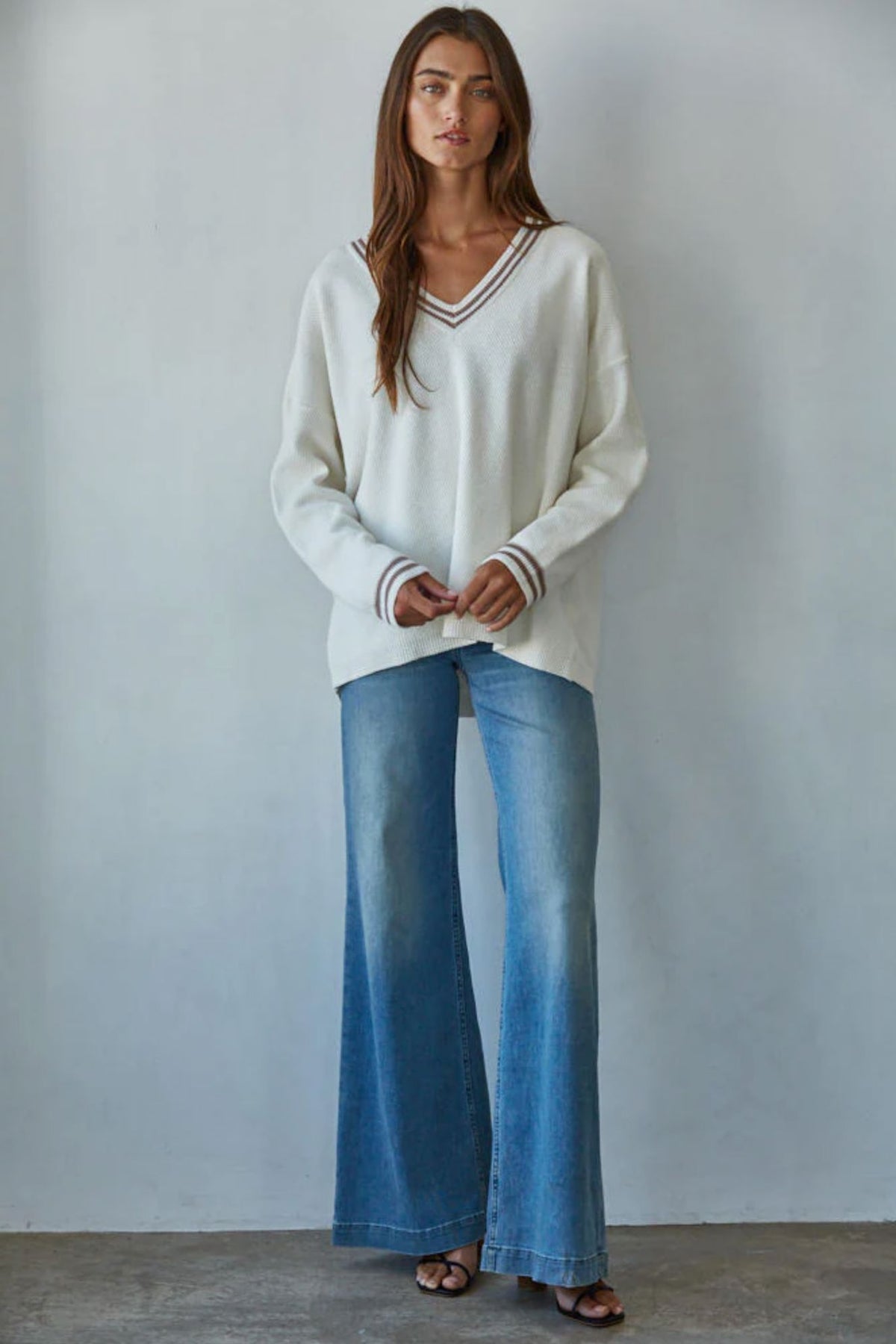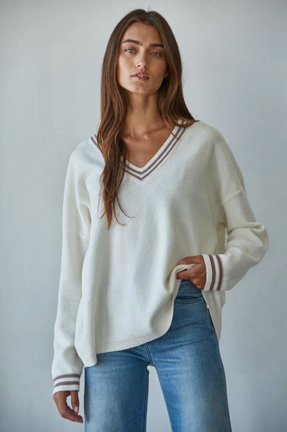 Wrap yourself in comfort with the Daniella Sweater, a cozy oversized pullover perfect for layering. Throw it over your favorite button-down for an effortlessly chic fall look that combines warmth and style with ease.