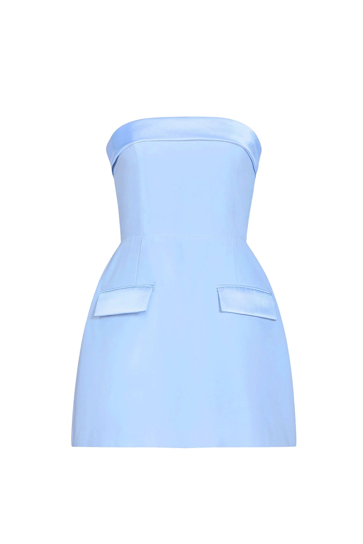 Dress for the occasion with the versatile Lucienne Skort Romper, your new go-to for a bold night out. This strapless one-piece features a rounded skirt and shiny accents on the pocket flaps and neckline. Its playful yet polished design makes it perfect for turning heads wherever the evening takes you.