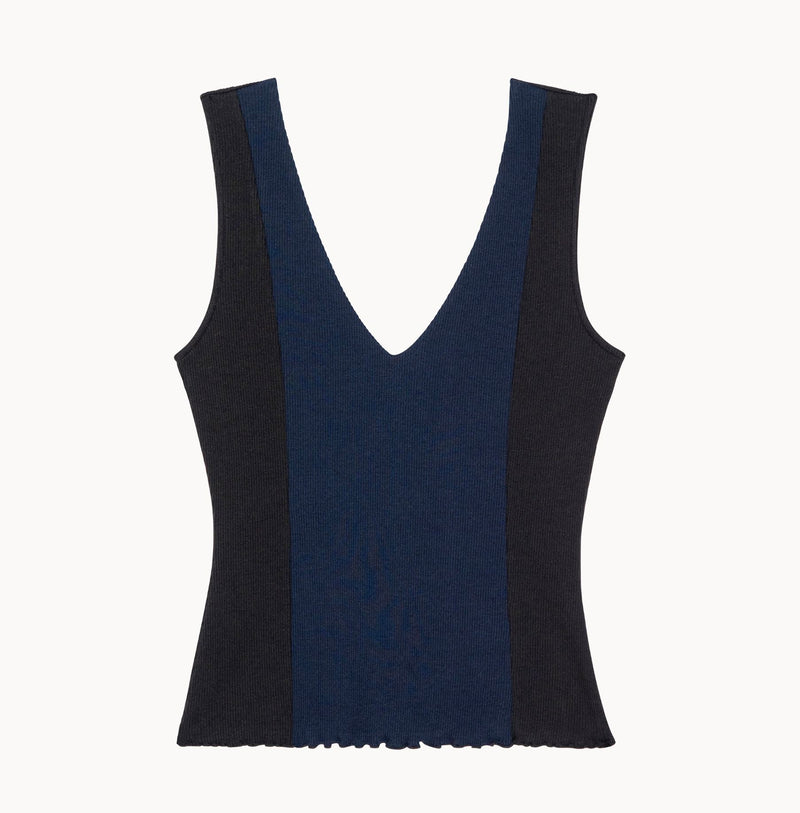 Designed in a subdued color-block Pima Cotton, the Reese Tank is poised and confident. Featuring a fitted bodice, this knit showcases a bra-friendly v-neckline and sleeveless, seamed silhouette to take you into warm weather with ease.