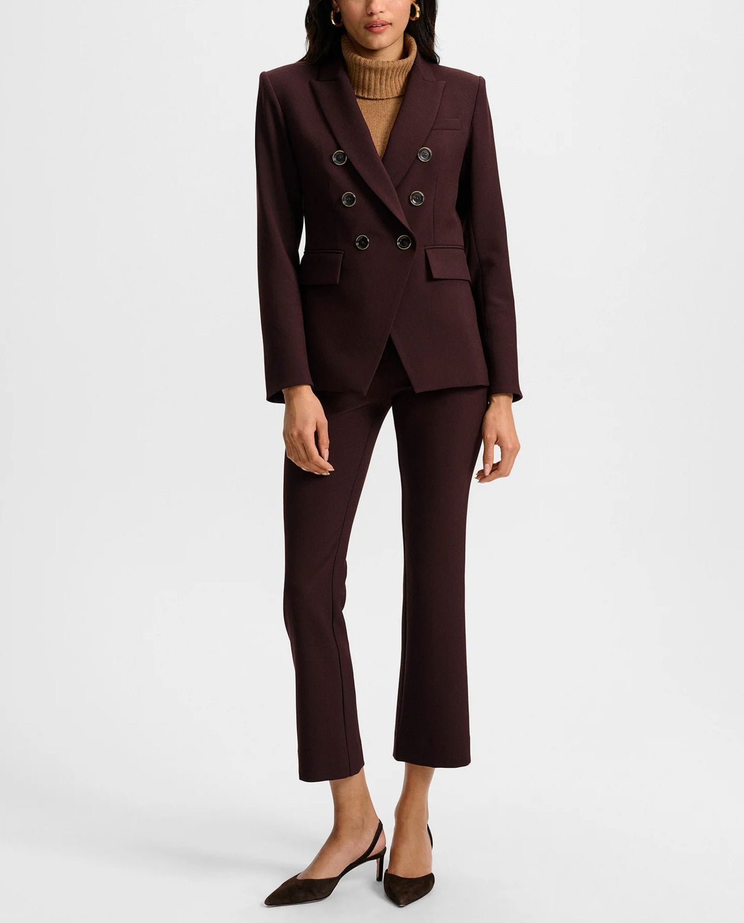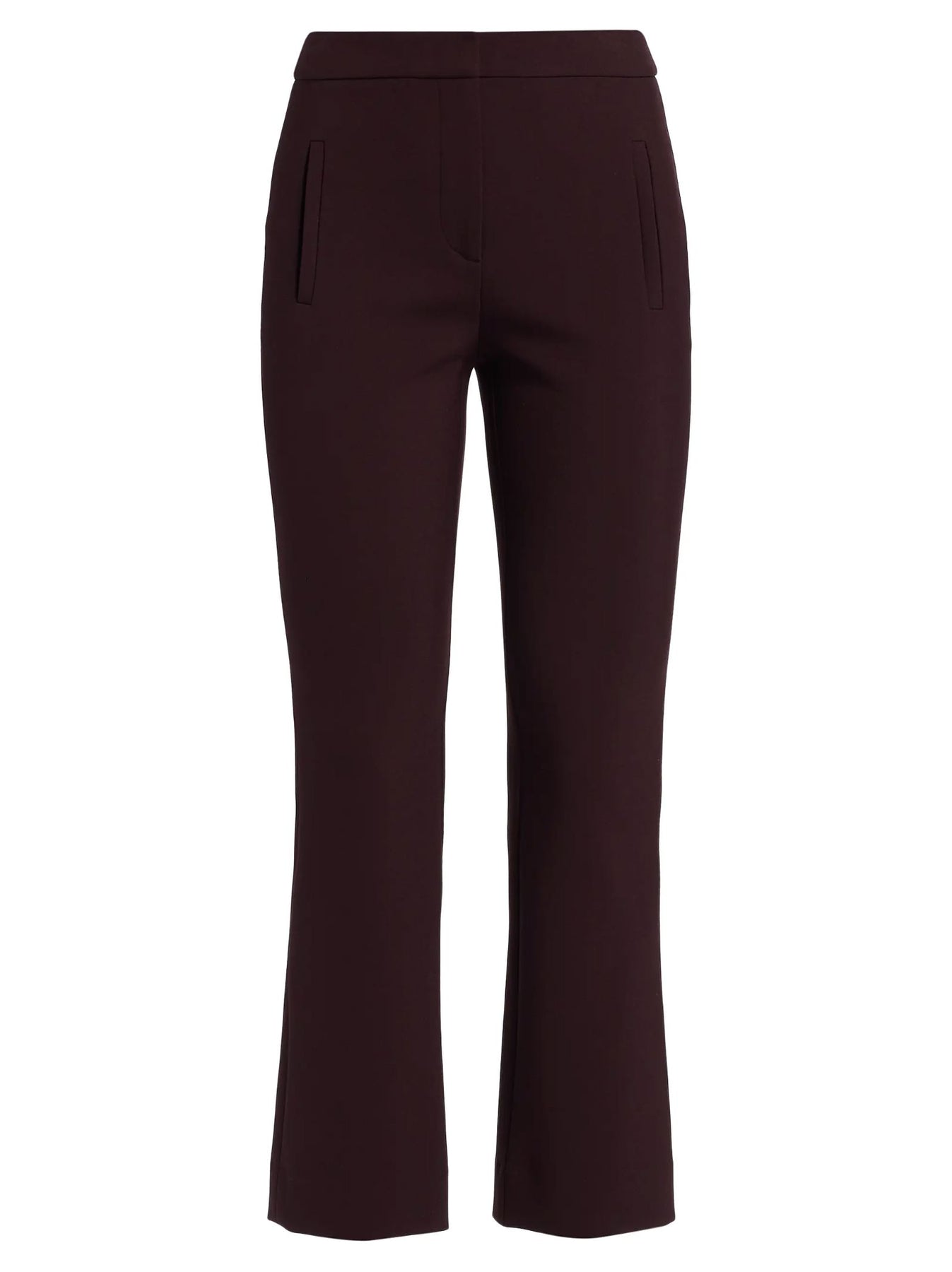 The Arte pant is a cropped, high-waisted pant with a slim fit and slightly flared hem, finished with flat welt pockets and a hidden hook-and-bar closure for a sleek, tailored look. Crafted from a soft and breathable stretch-cotton blend, it’s the perfect pant for summer—pair it with the coordinating Avalina vest for a sleek tailored set.