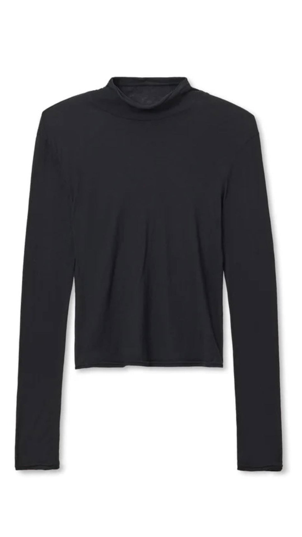 the kim top is part of the light french jersey collection, designed with a flattering loose mock-neck and a featherweight feel. sheer, fitted and breathable, this silhouette offers a barely-there touch that layers seamlessly or stands on its own for a sleek, modern look. creates a more vintage look after each wash.