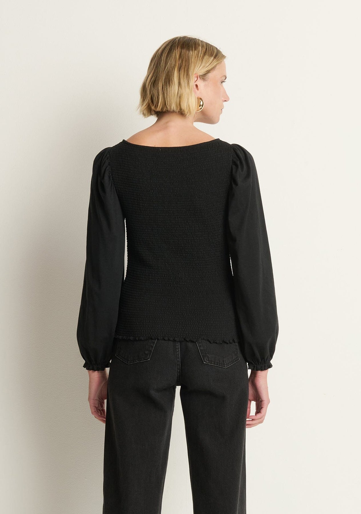 You’ll keep this one in rotation no matter the season. The Aidan Smocked Top combines a refined silhouette with luxe comfort—crafted from soft jersey in a fitted, gathered design. A V-neck and long sleeves finish this feminine staple, our take on uncomplicated beauty.