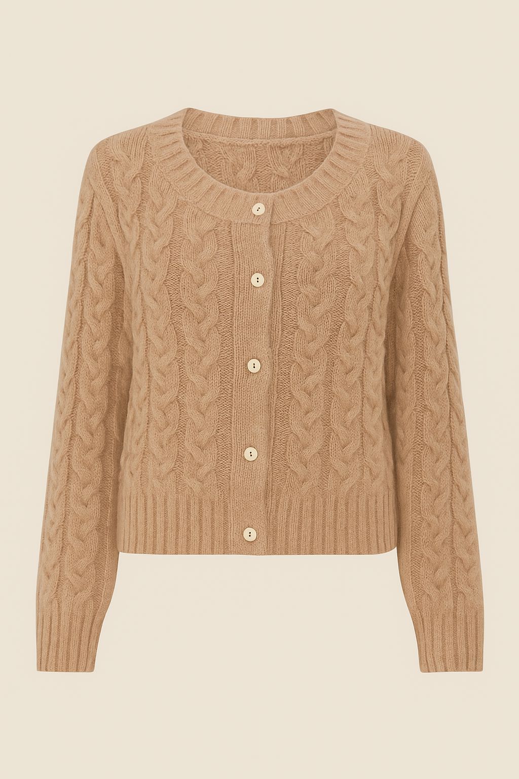 Wrap yourself in cozy charm with the Ivy Cable Cardigan, a timeless classic that's anything but boring. This neutral-toned knit features a gorgeous cable pattern that adds texture and visual interest to any outfit. Layer it over your favorite dress, pair it with jeans, or match it with our coordinating skirt to create an effortlessly put-together set. Perfect for those moments when you want to feel both comfortable and polished.