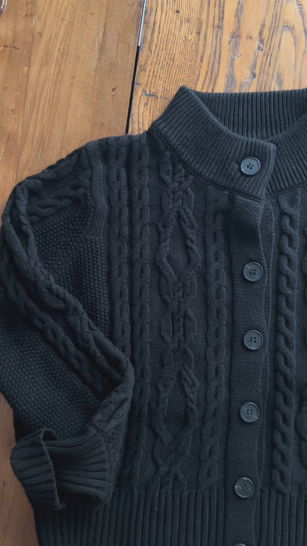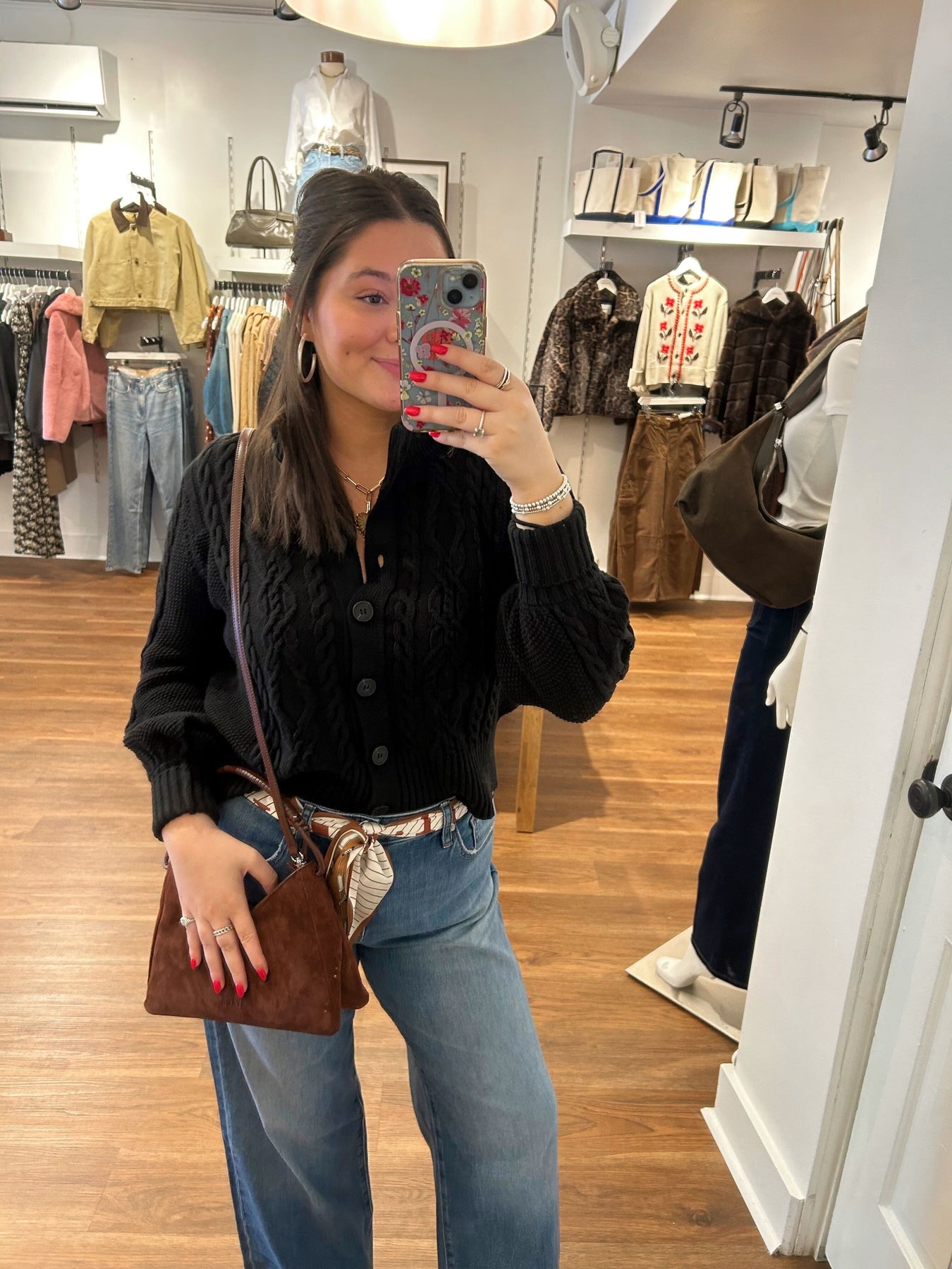 Meet the Julie Cardigan: the ultimate textured layering piece you’ll reach for all season. This cable knit stunner in rich, on-trend brown delivers both texture and warmth, without weighing you down. Ribbed hem and cuffs frame the silhouette, while tortoiseshell buttons bring an elevated finish you can dress up or down. Whether thrown over a dress for brisk morning coffee or paired with denim on weekend escapes, its packable design and timeless detail make fall and winter layering impossibly easy.