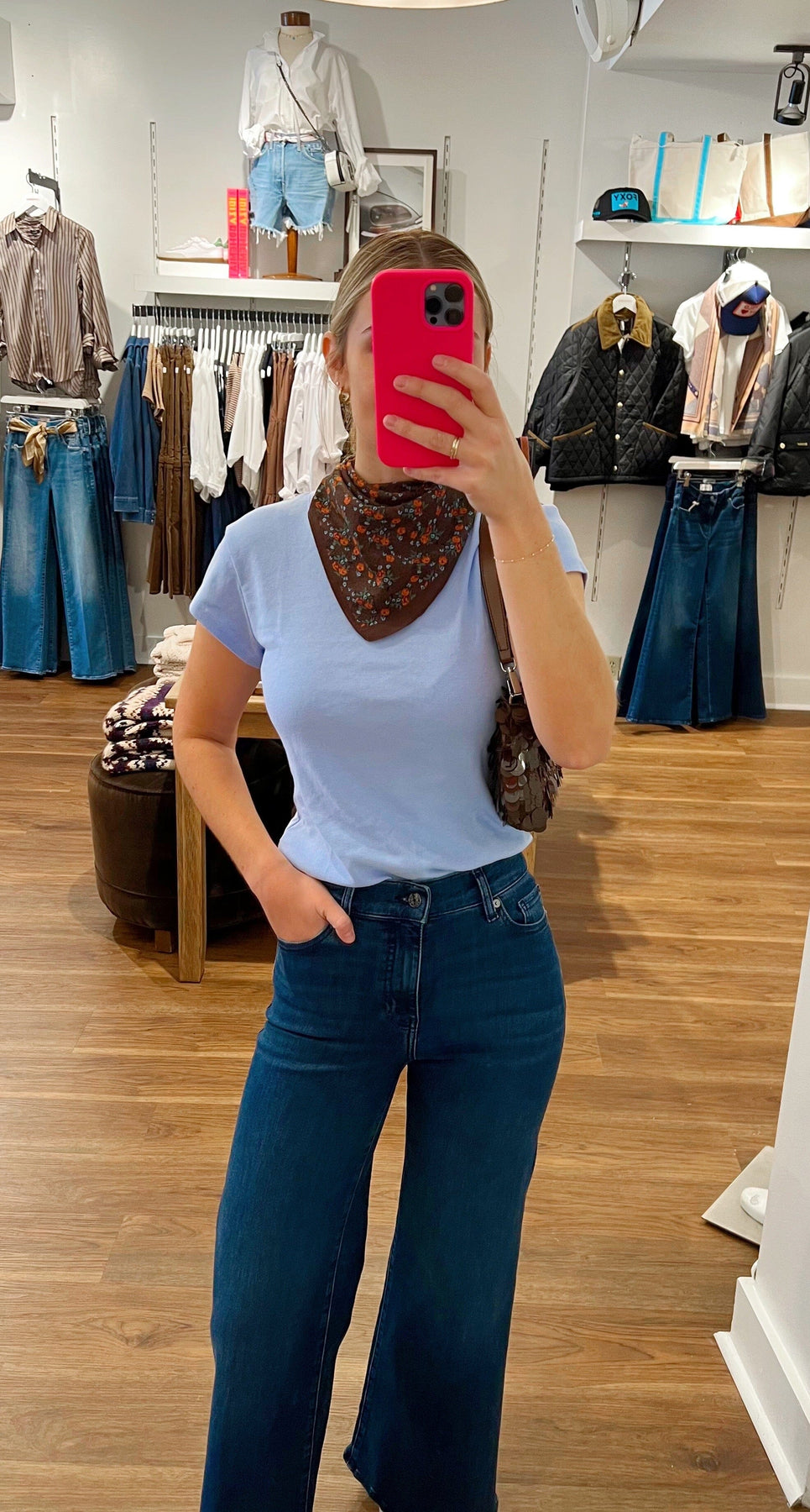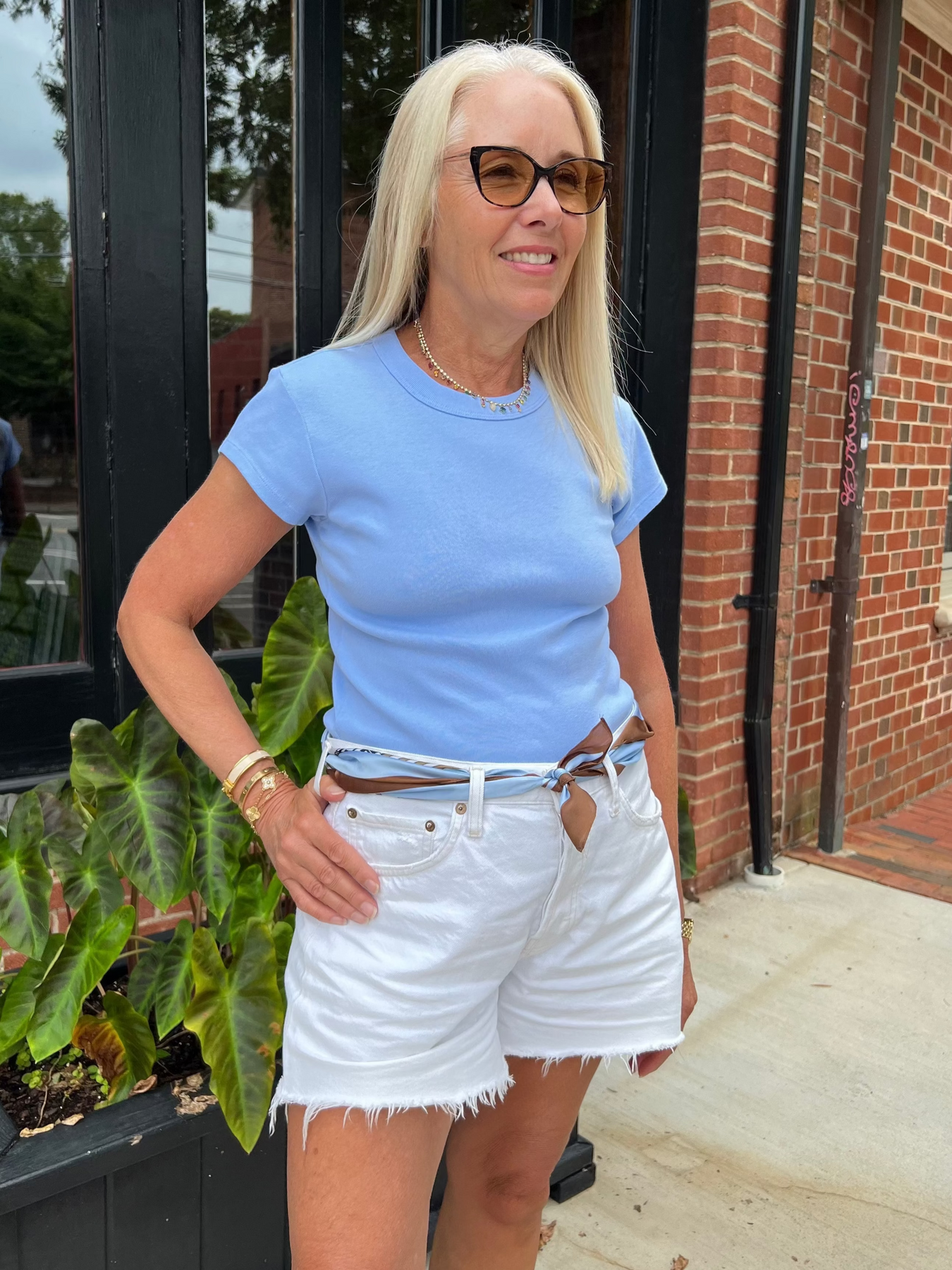 The Lexy Tee offers a timeless silhouette with its classic crew neckline and versatile tuckable length. Crafted from a stretchy fabric, this one-size-fits-most design ensures a comfortable, easy fit that adapts gracefully to your shape. Perfect for layering or wearing alone, it combines simplicity with refined style for effortless sophistication.