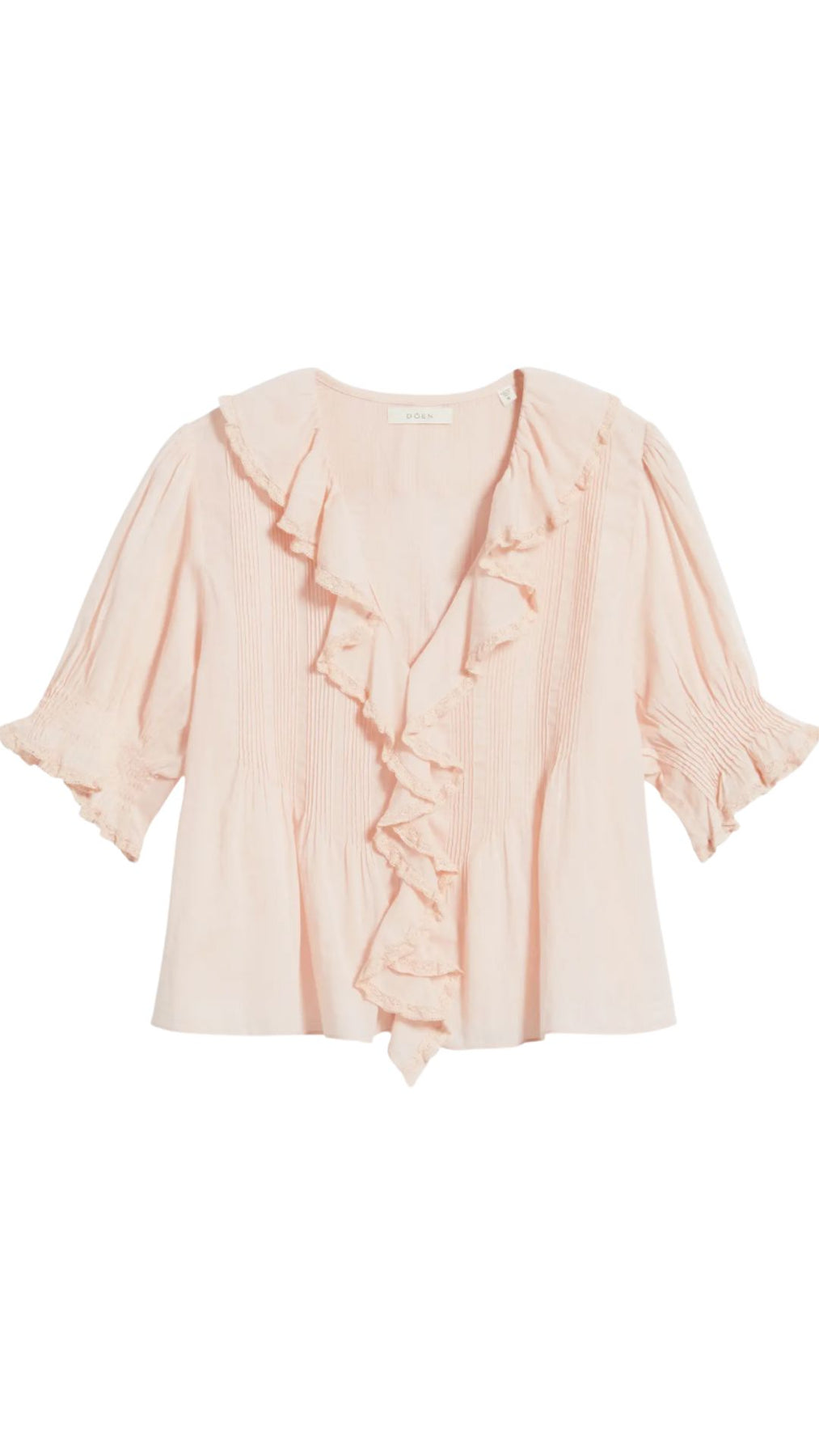 The cult-favorite Cali label's retro/romantic aesthetic pervades every stitch of this ever-enchanting organic-cotton voile top decorated in cascading, lace-trimmed ruffles and scores of delicate pintucked pleats.