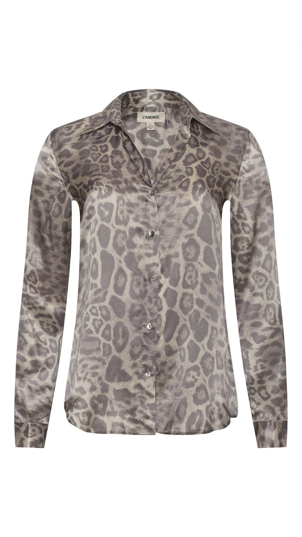 Meet the iconic long-sleeve silk button-down that belongs in every wardrobe. This L'AGENCE bestseller is now back in a gray leopard print.
