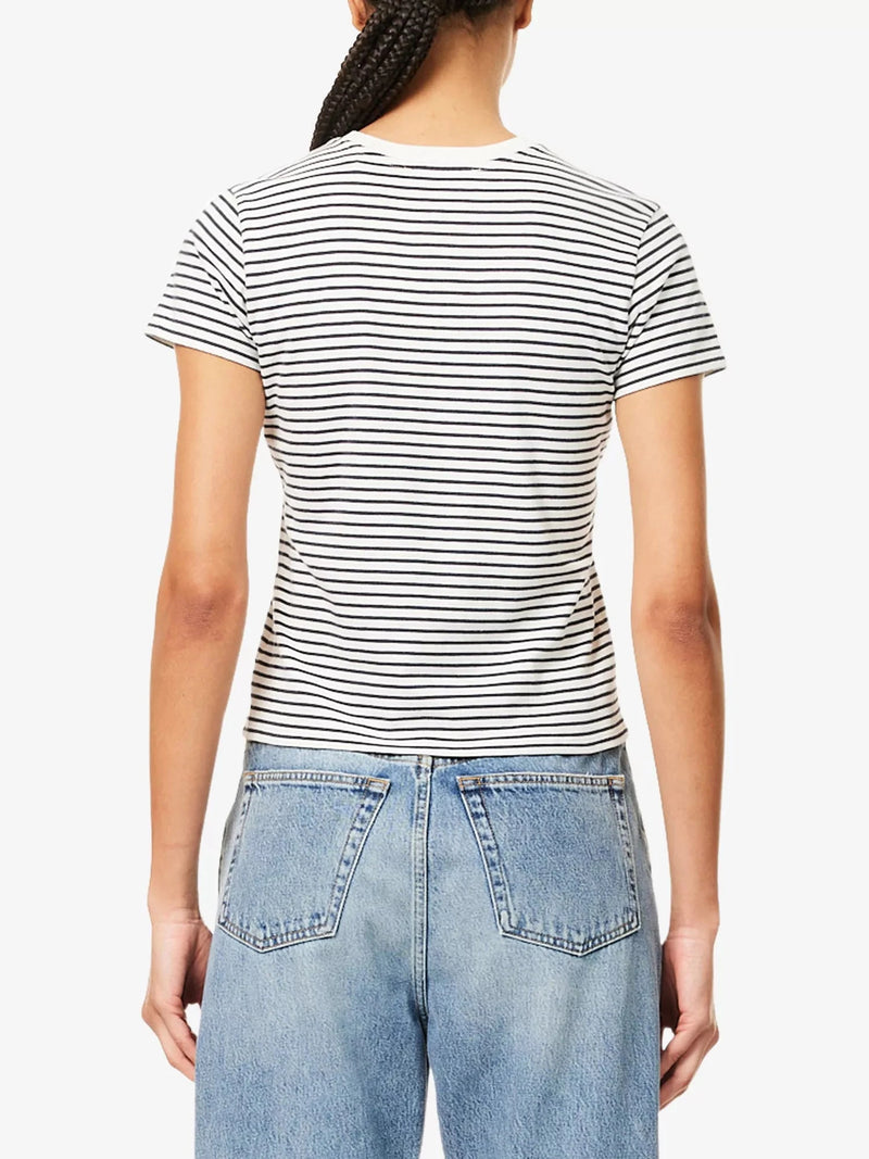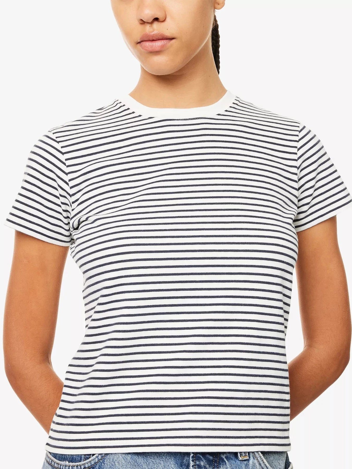 Crafted in indulgently soft and slightly sheer cotton, this striped baby tee is your go-to everyday t-shirt. Cut to a slightly shrunken fit, you can pair it with denim for a chic, fuss-free uniform.