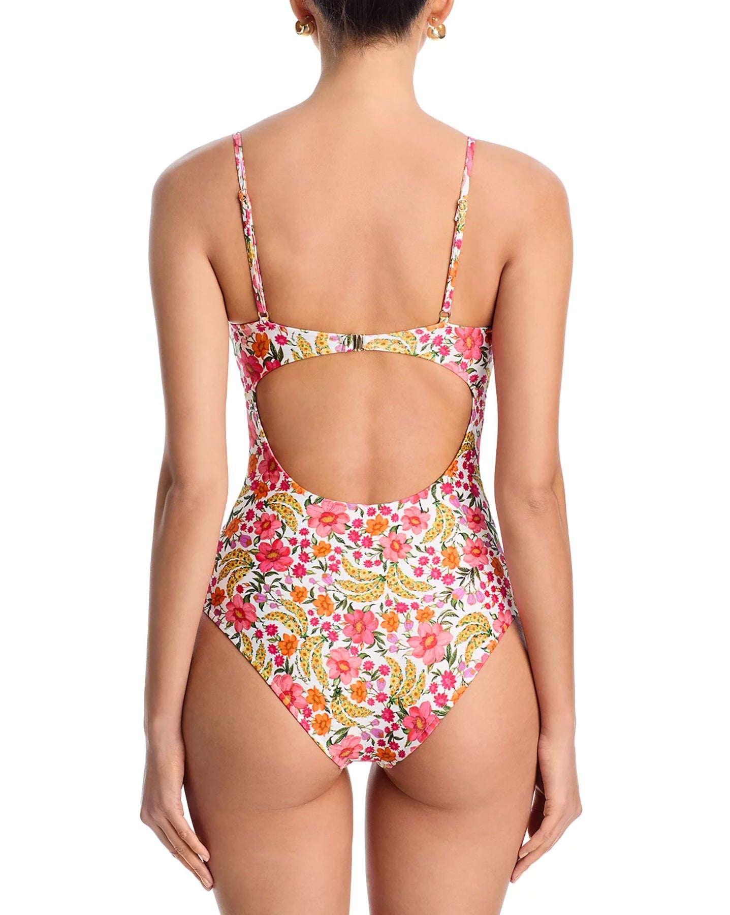 Dive into effortless tropical charm with the Off-White Banana Flowers One-Piece Swimsuit from FARM Rio. This playful piece features a creamy off-white base adorned with vibrant banana flower motifs that celebrate Brazilian nature. Its flattering cutsculptures the silhouette with gentle ruching and a subtle sweetheart neckline, creating a soft, feminine shape. Perfect for sun-soaked days, it combines comfort and joyful elegance in every wave and breeze.