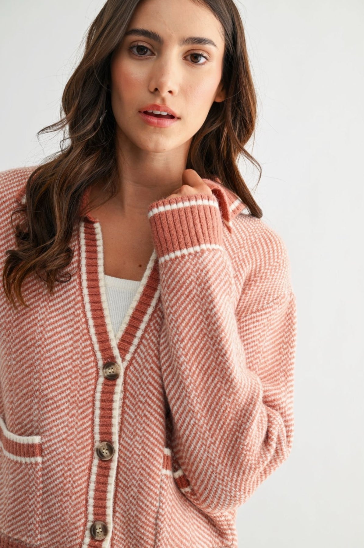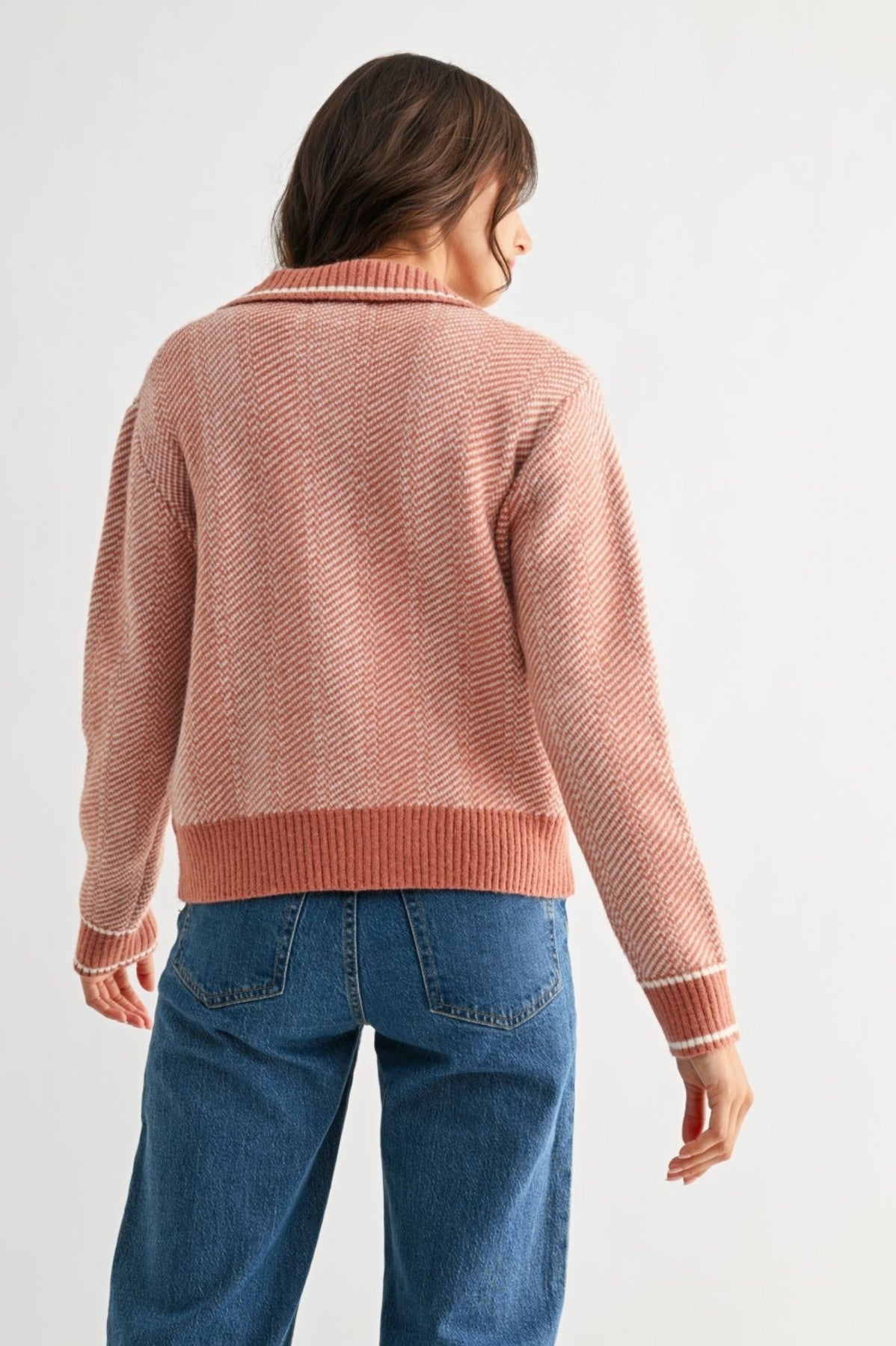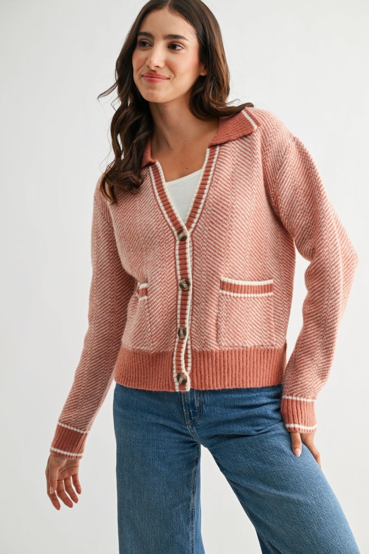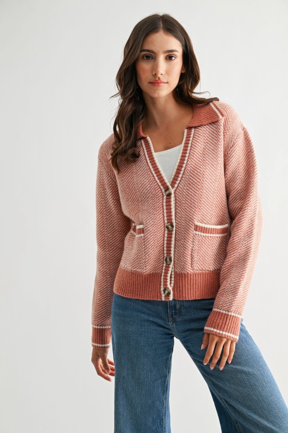 Meet your new favorite herringbone knit cardigan — the Bryer Sweater! Perfect for those who like to mix a dash of elegance with everyday ease, it's crafted to upgrade your work wardrobe with cozy charm and a stylish twist. Who says corporate can’t be comfy?