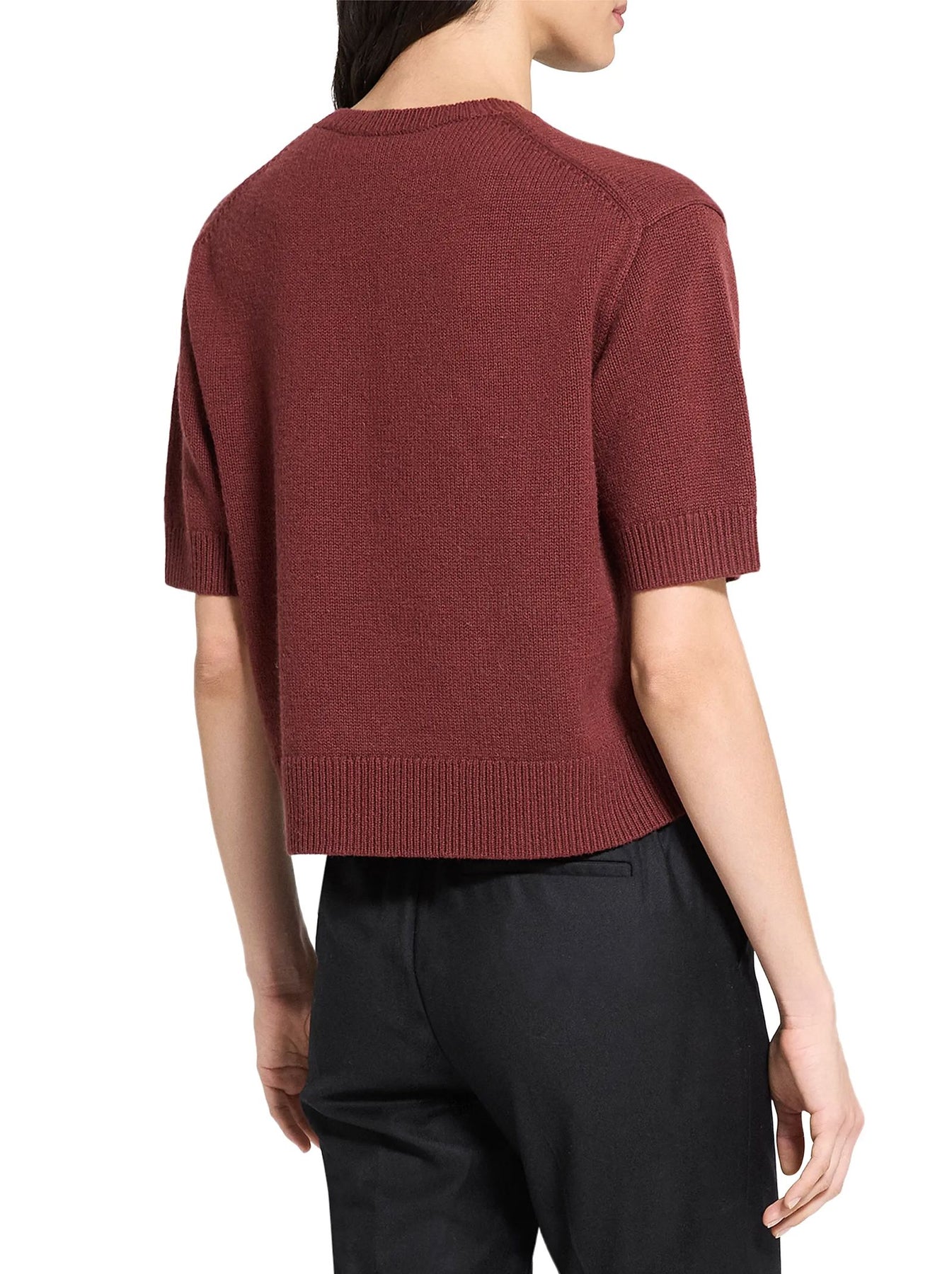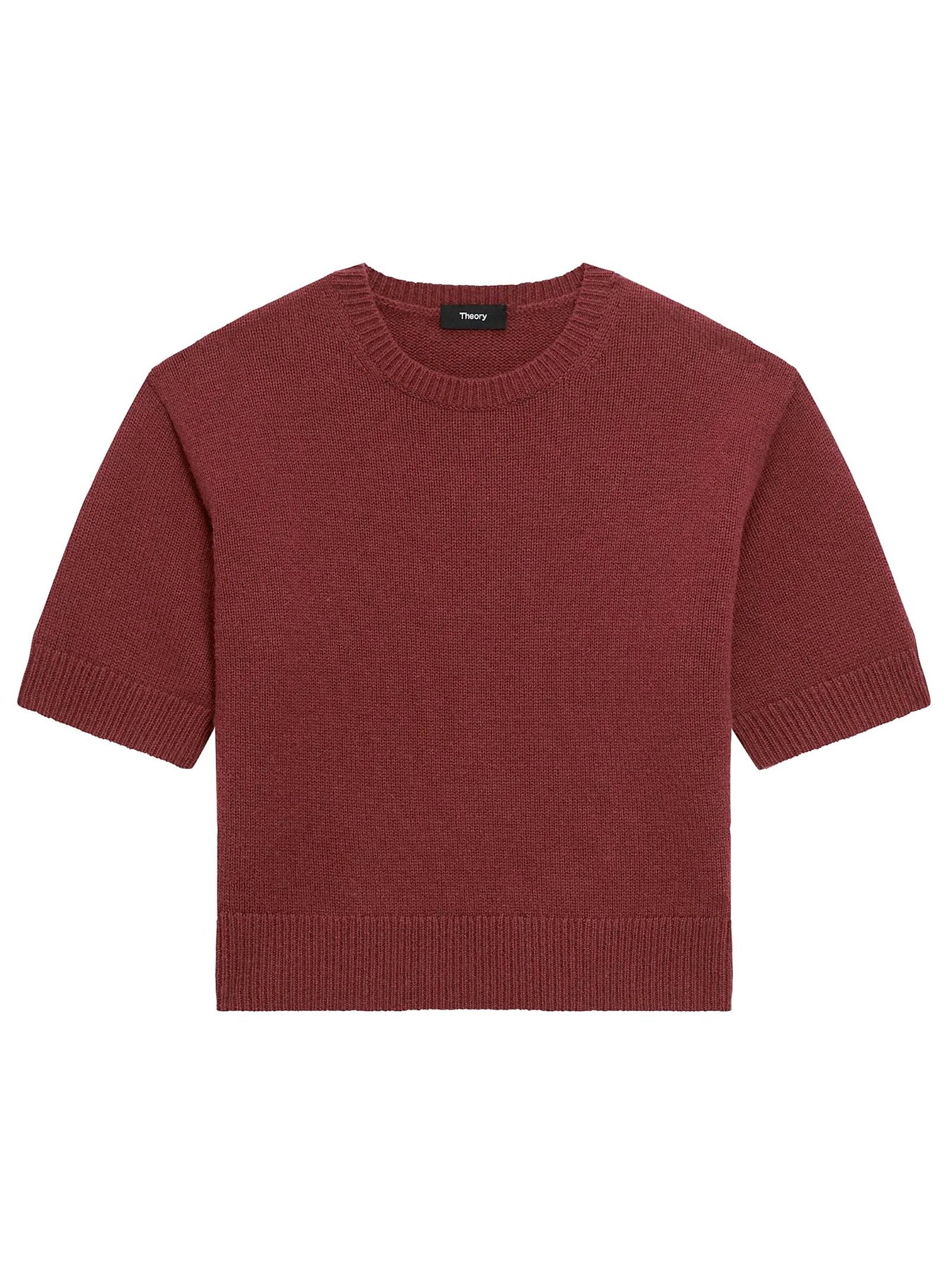 Crafted of a cashmere knit, this cropped T-shirt from Theory is styled with a crewneck, short sleeves, and ribbed trim.