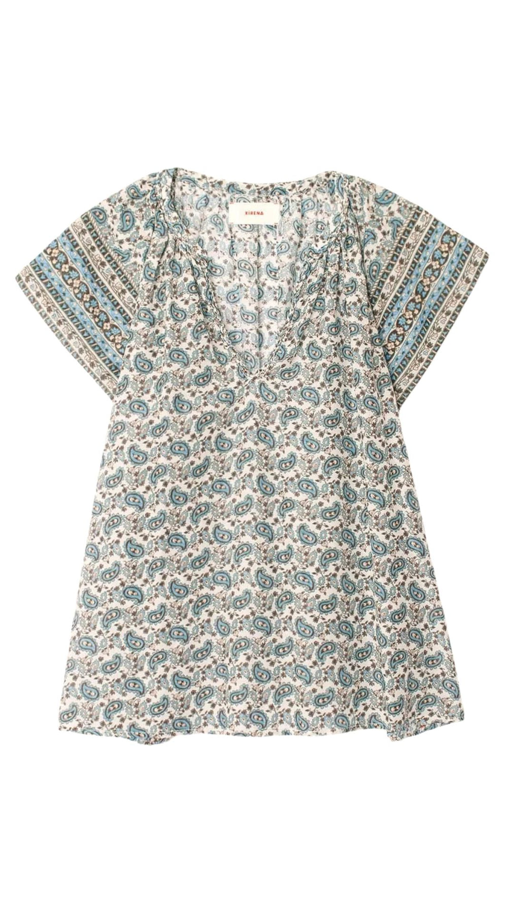 Pretty in Print. Clover is made in our new paisley border print cotton silk voile for an elevated feel. This easy popover top features a v-neck with braided trim and cap sleeves.