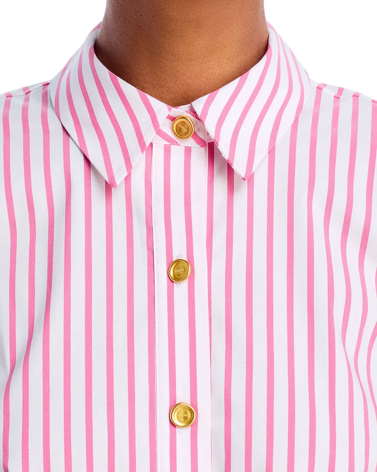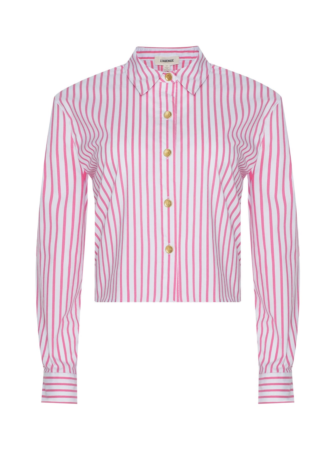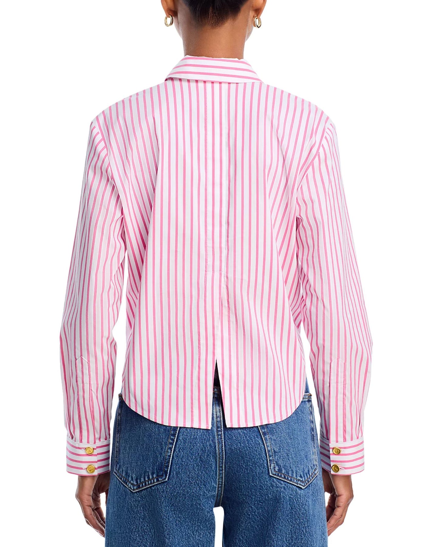 A classic tailored shirt with a cool, borrowed-from-the-boys fit and cropped high-low hem. Now back in a pink and white stripe called "Pinktober".