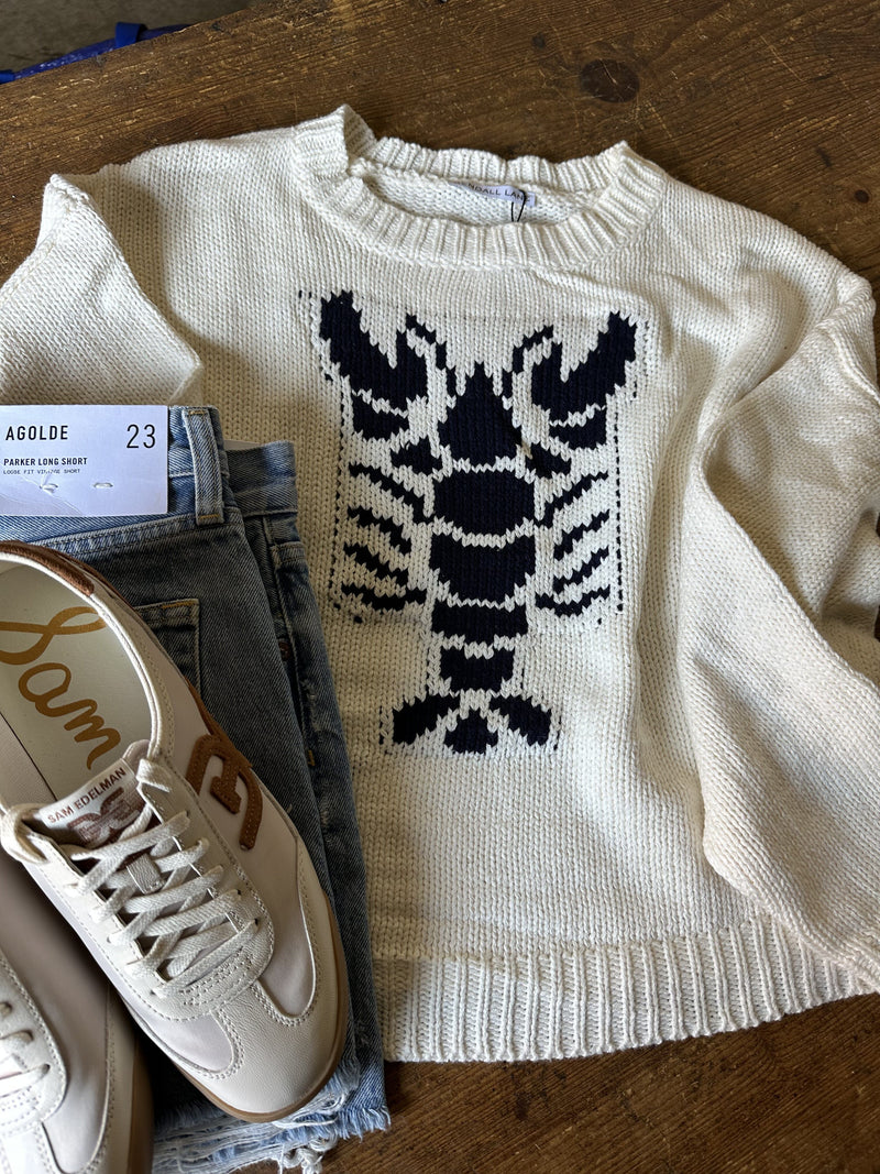 Embrace seaside vibes with the Cropped Lobster Sweater, perfect for throwing on during those warm summer nights. Its easy, relaxed fit keeps you comfy while adding a splash of nautical charm to your look. Whether you're strolling the boardwalk or enjoying a bonfire, this playful sweater brings a fun, coastal twist to your casual wardrobe.