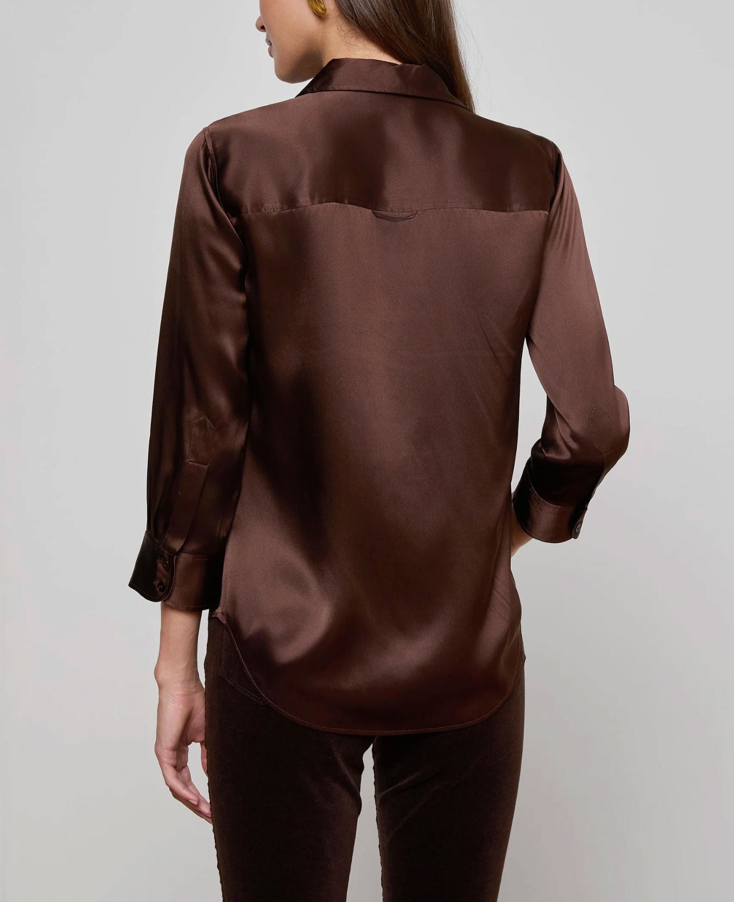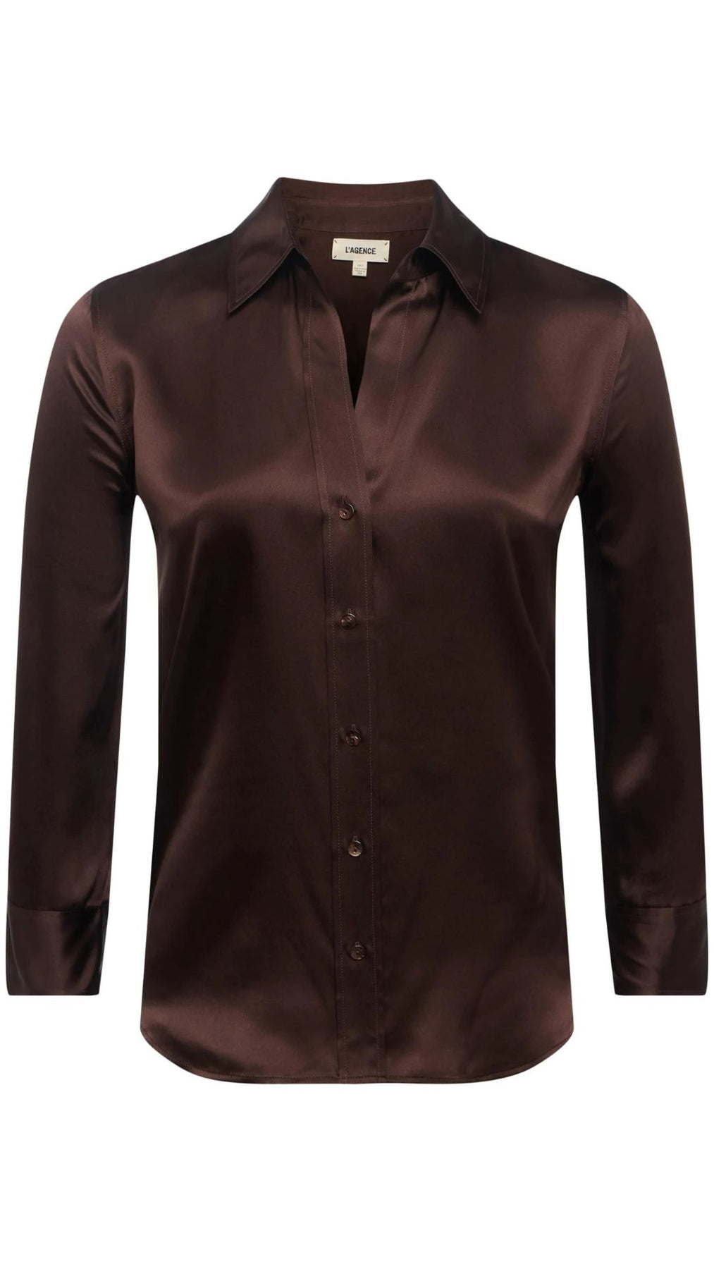 Meet the iconic silk button-down that belongs in every wardrobe. Our signature three-quarter sleeve shirt is back in rich coffee bean brown.