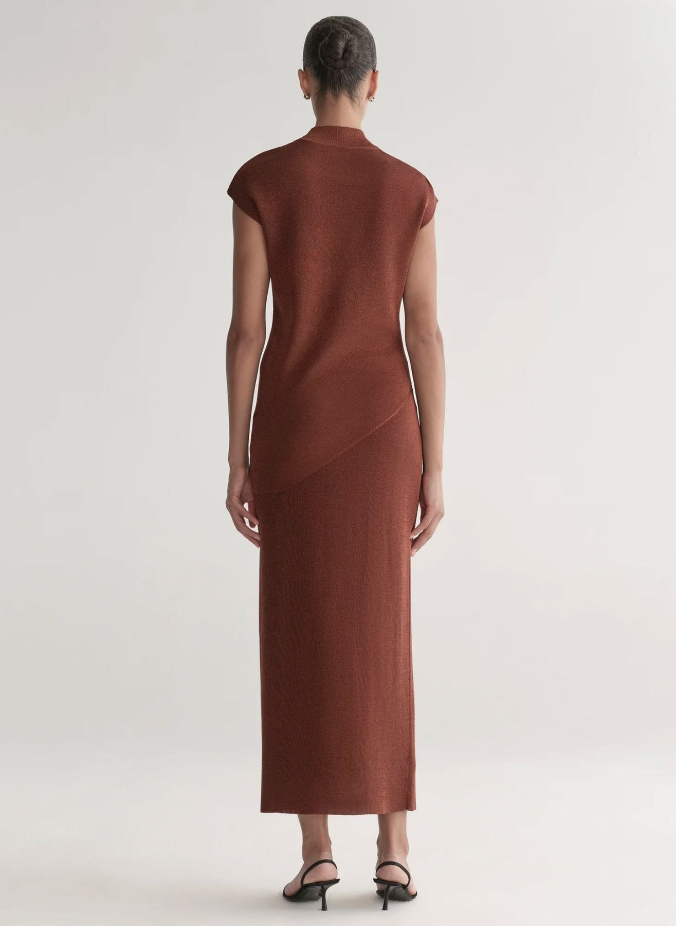 The Edith Top brings subtle sheen and soft structure to modern knit dressing. Crafted in a rich rust hue from metallic stretch knit with viscose for a smooth hand and comfortable feel, this sleeveless silhouette features a mock neckline and softly fitted shape that skims the body with ease. Pair it with the coordinating skirt for a streamlined, tonal look.