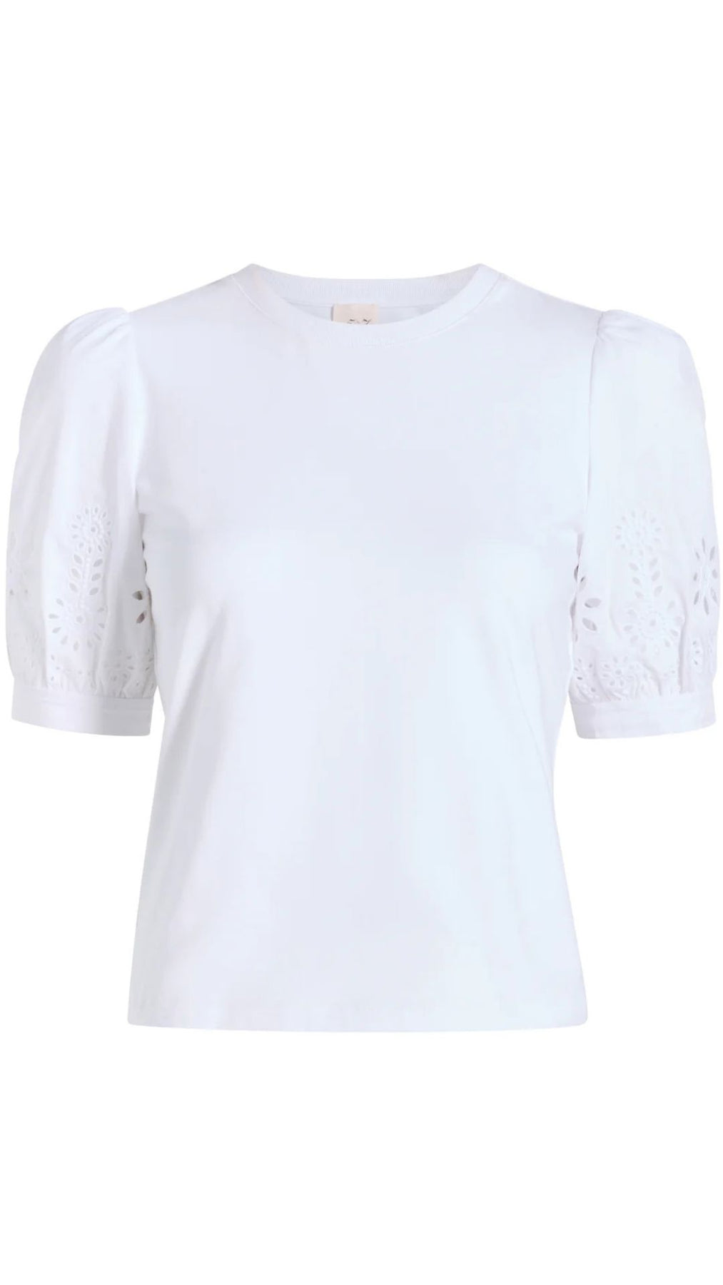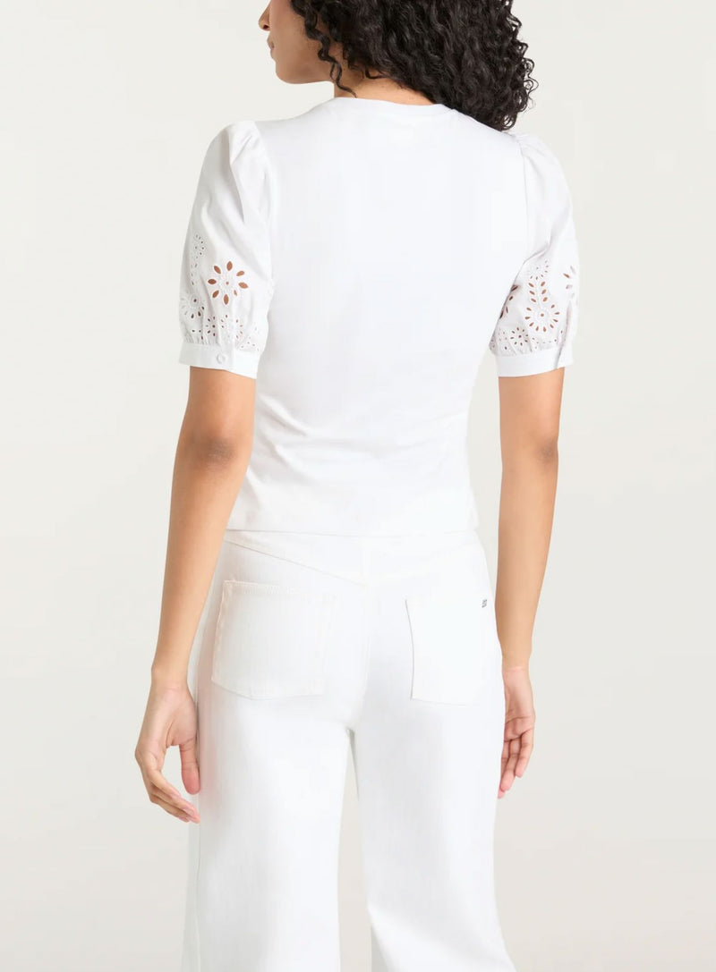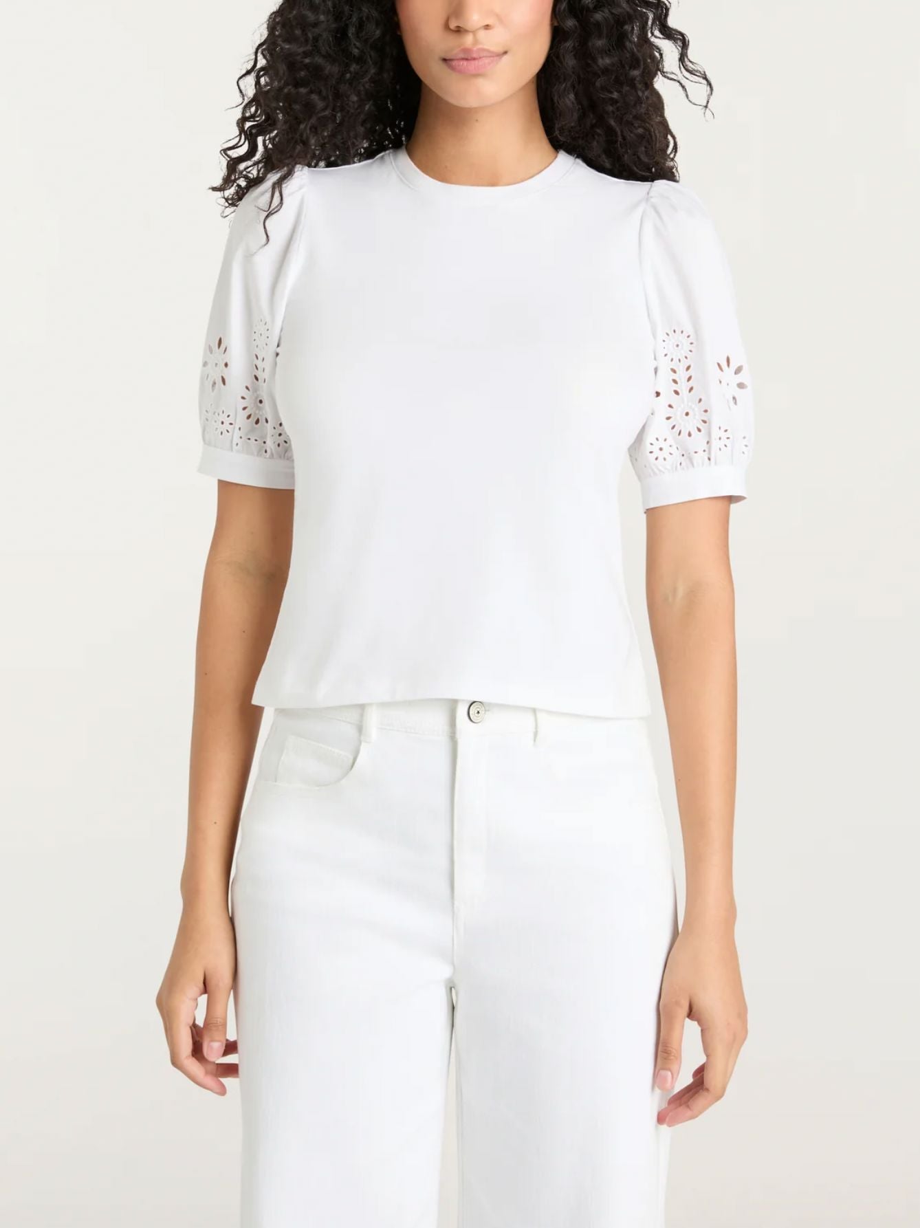 Enhance your wardrobe with our Embroidered Mazie Eyelet Coria Top! This beautiful top features intricate embroidery on the sleeves, adding a touch of elegance to your look. The full length and short sleeve design provide comfort and versatility.