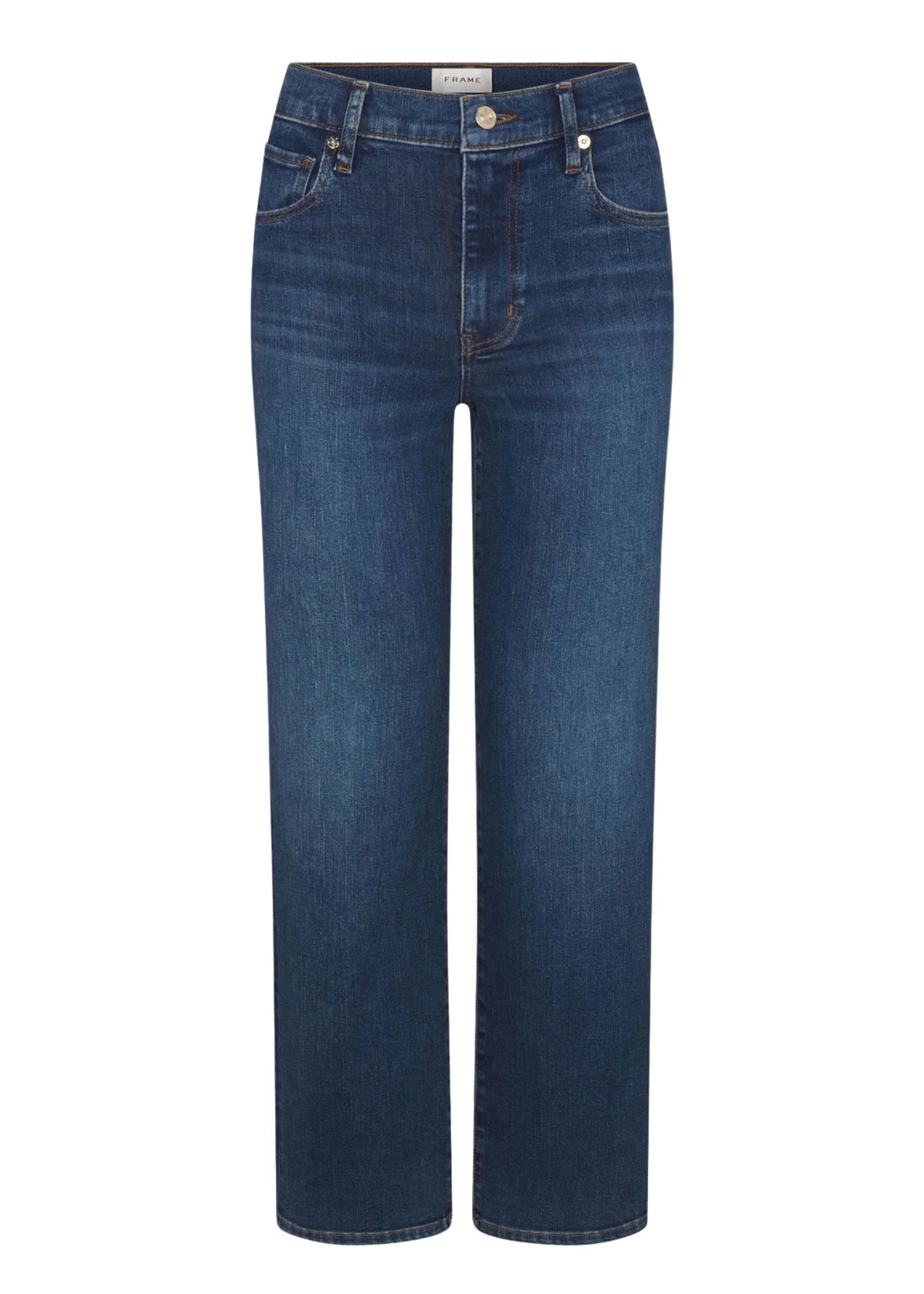 Relax in your next must-have super-stretch jean. Featuring a true mid-rise, ankle-length inseam, frayed raw hem and slim wide leg, the Mellow is emblematic of the next generation of FRAME.