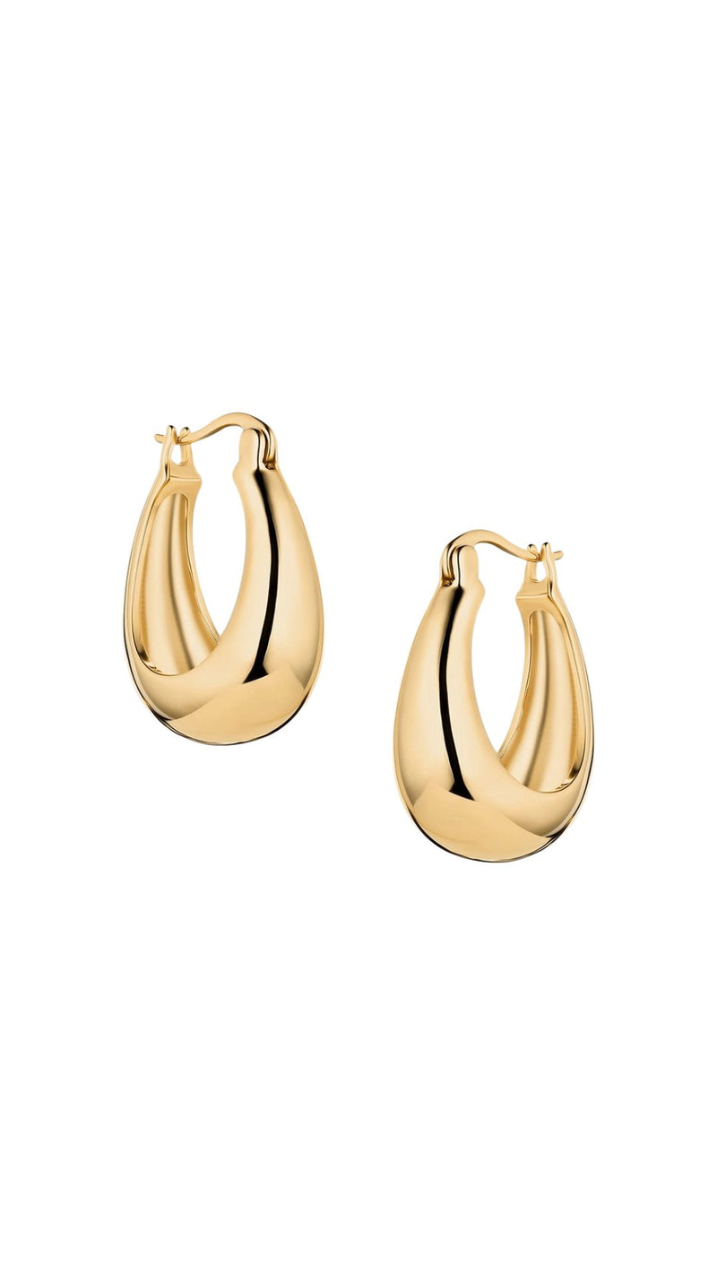 14k gold plated hinged bubble hoop earrings measuring 22mm long x 16mm wide x 9.5mm thick.