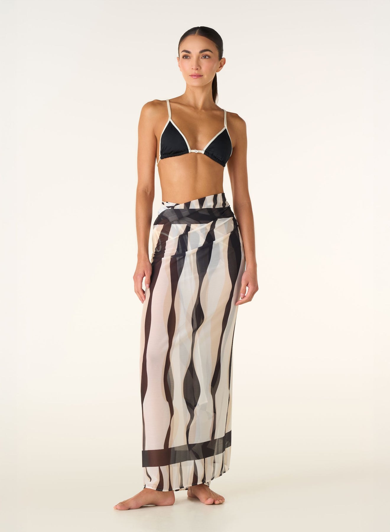 The Sarong Pareo Moon stands out for its lightweight texture and versatile design. Made from semi-sheer fabric with contrasting wave patterns, it can be styled multiple ways—as a skirt, dress, or layered beach cover-up. Its soft drape and fluid silhouette make it an essential piece for effortlessly elegant beach looks.