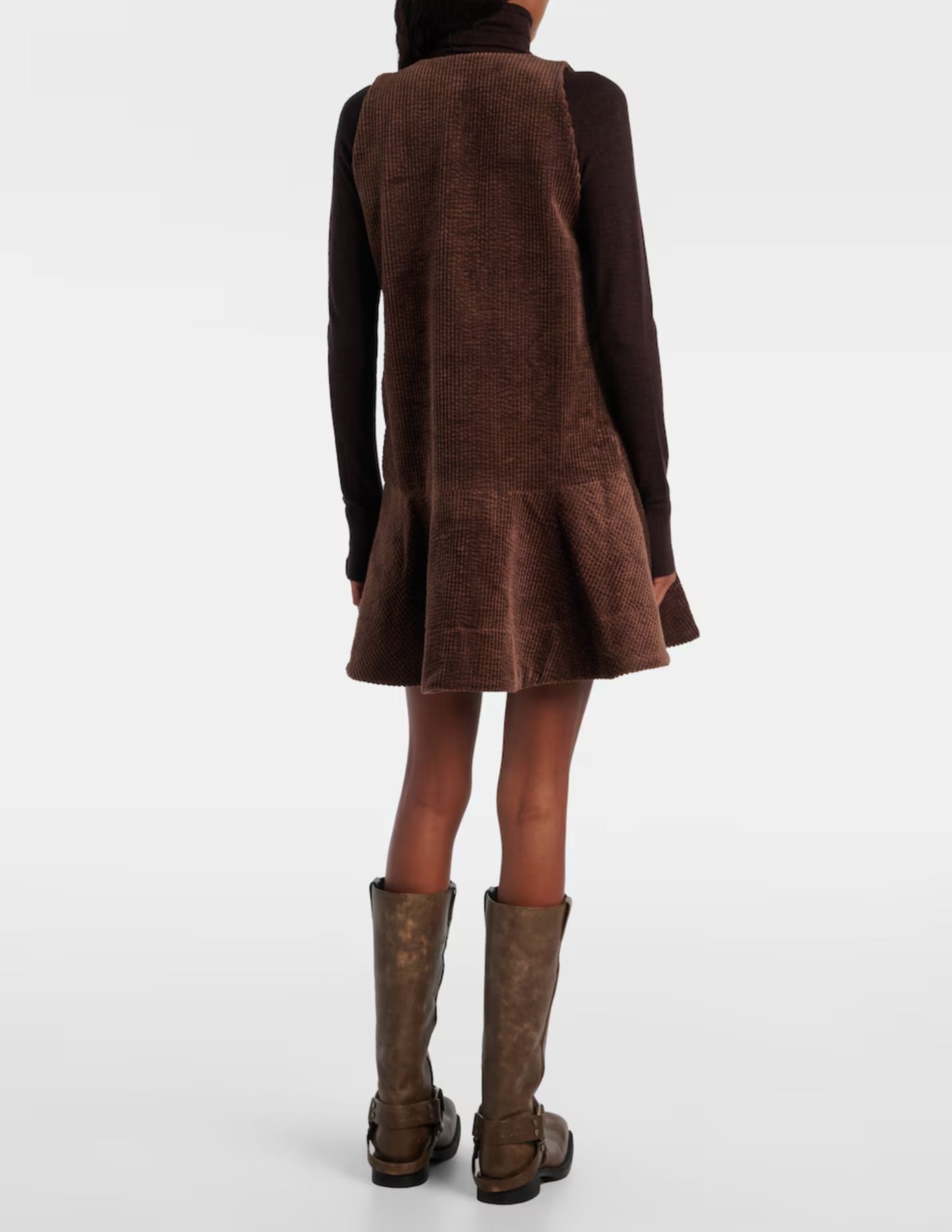 Copenhagen-based brand Ganni reshapes the meaning of Scandinavian style with its whimsy and playful approach to design. Crafted from cotton corduroy, this minidress features a flattering V-neckline, a flared skirt, and a zip side closure.