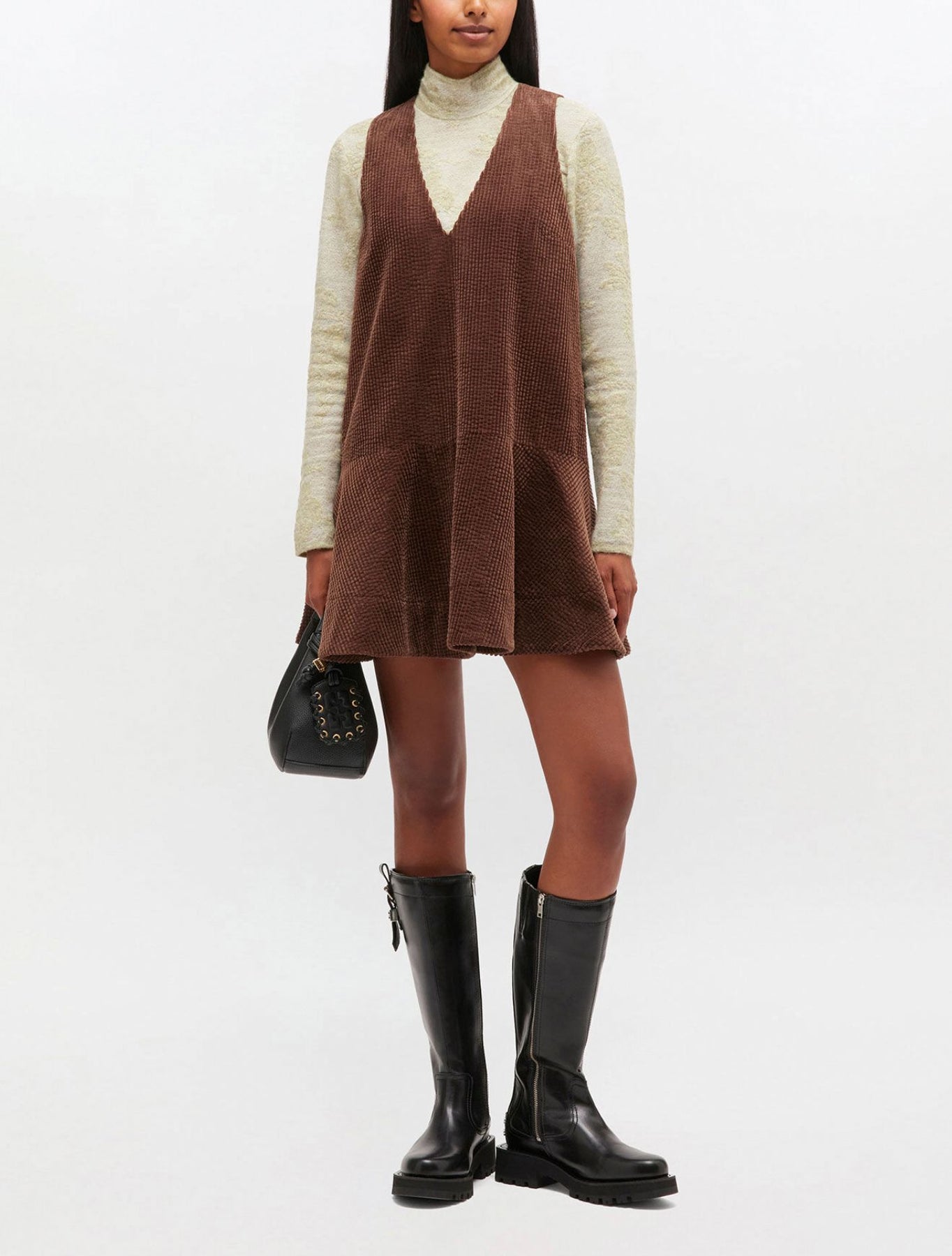 Seersucker Corduroy Mini Dress-Dresses-Uniquities
