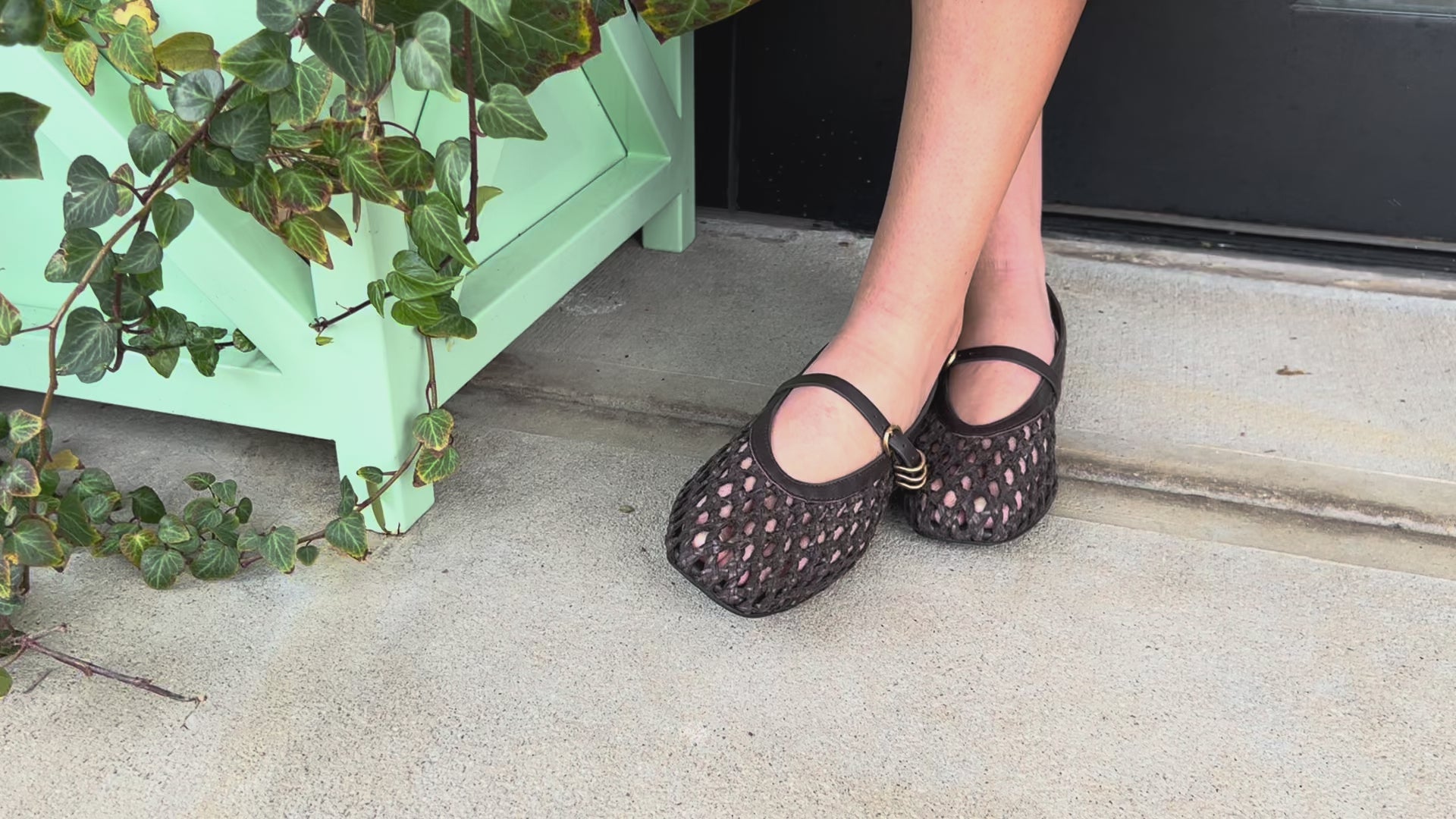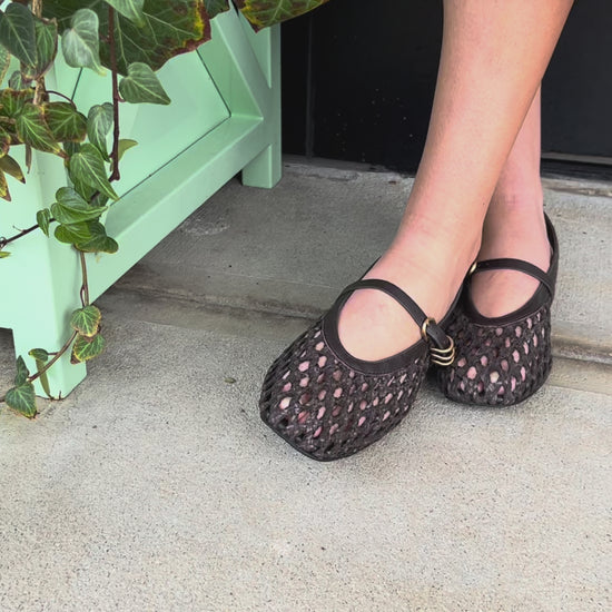 These rag & bone Spire Mary Jane flats are crafted of a dark brown woven material and styled with an adjustable strap.